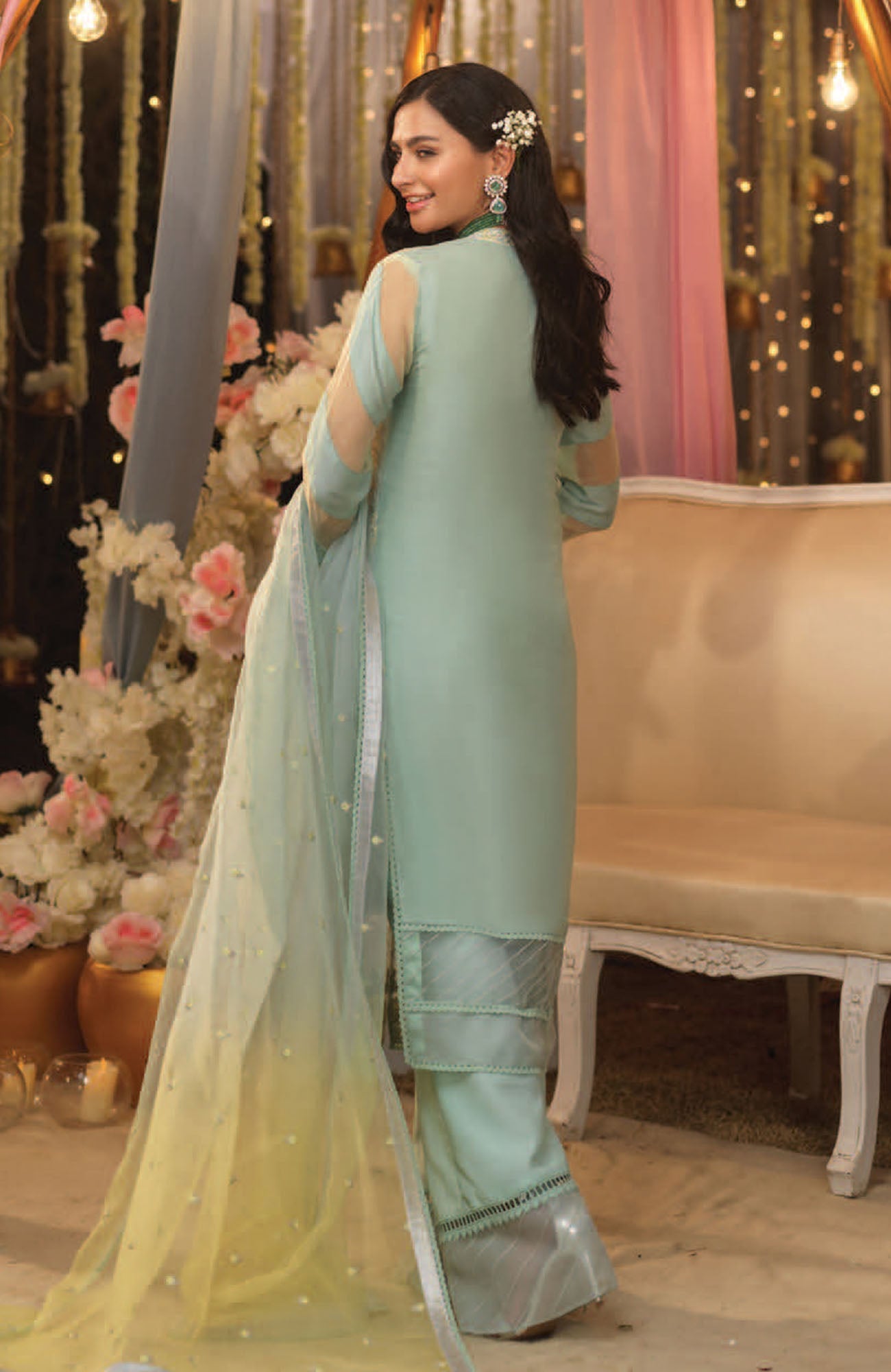 Embroidered organza dupatta 2.5 m