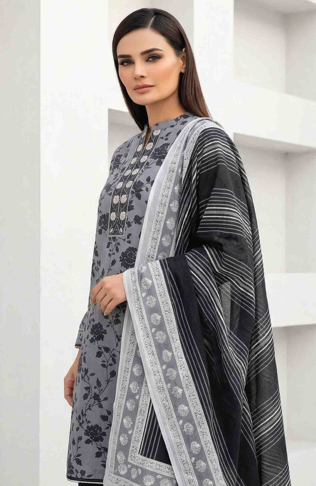 Black & White by Regalia Textile Unstitched Lawn Printed 3 Piece Suit - RGLBLWTLP -02 Summer Collection