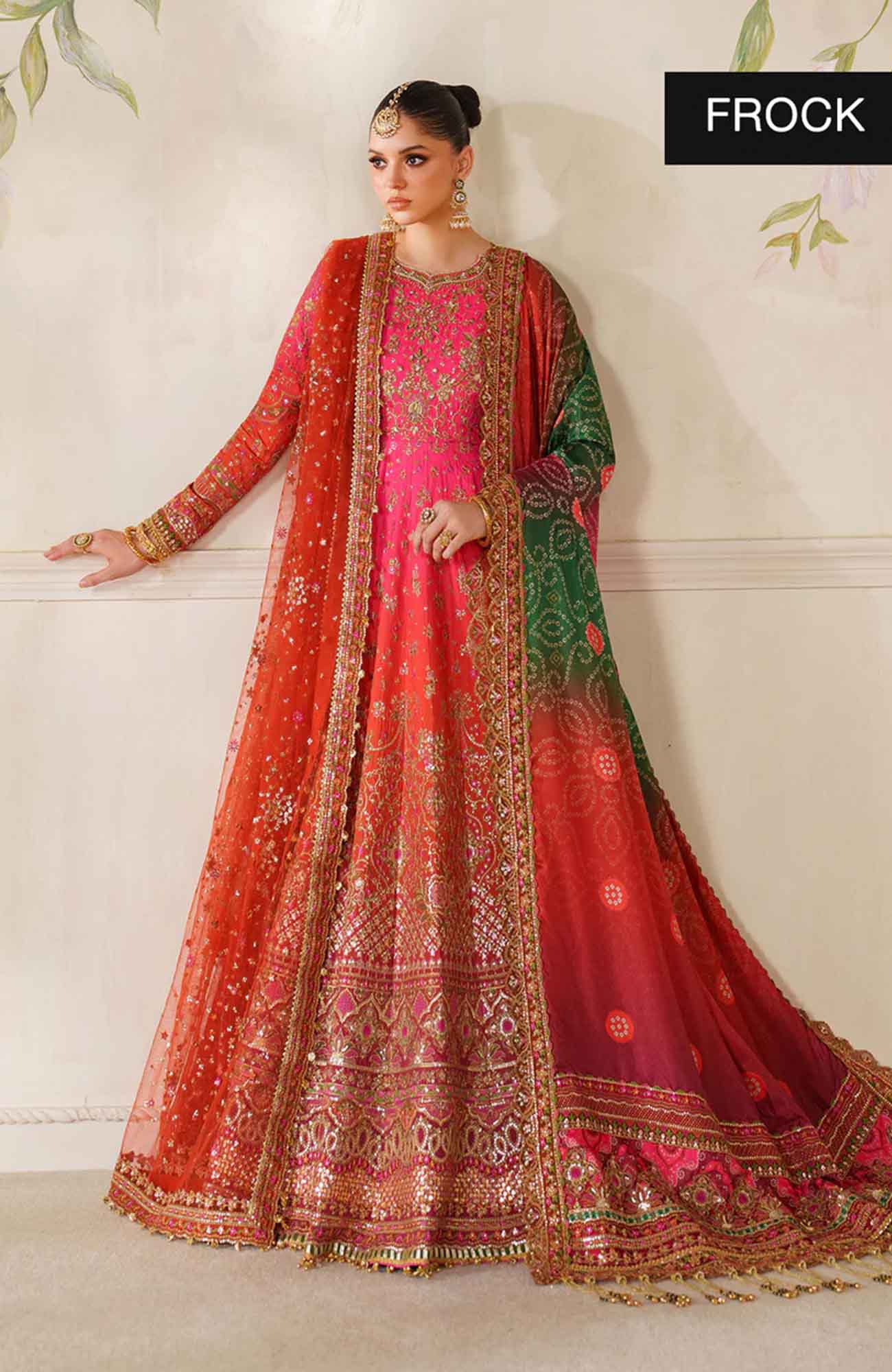 Embroidered digital printed silk dupatta (2.75 Yards)