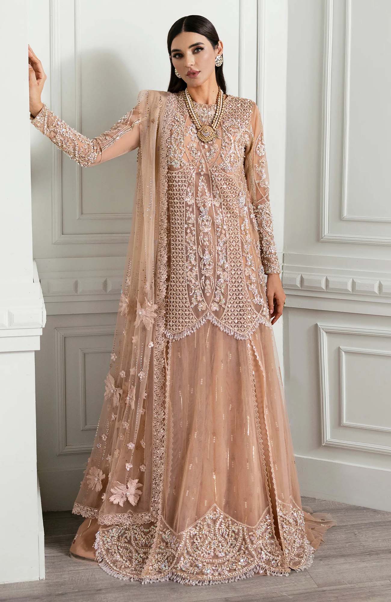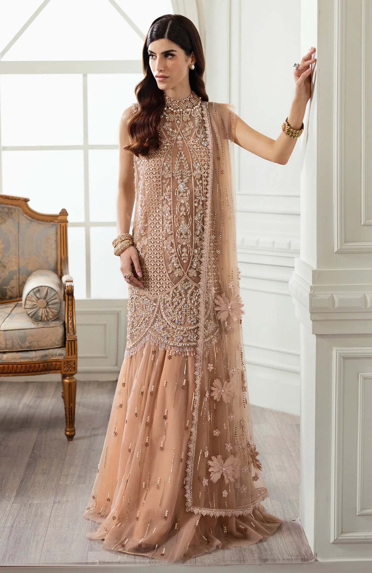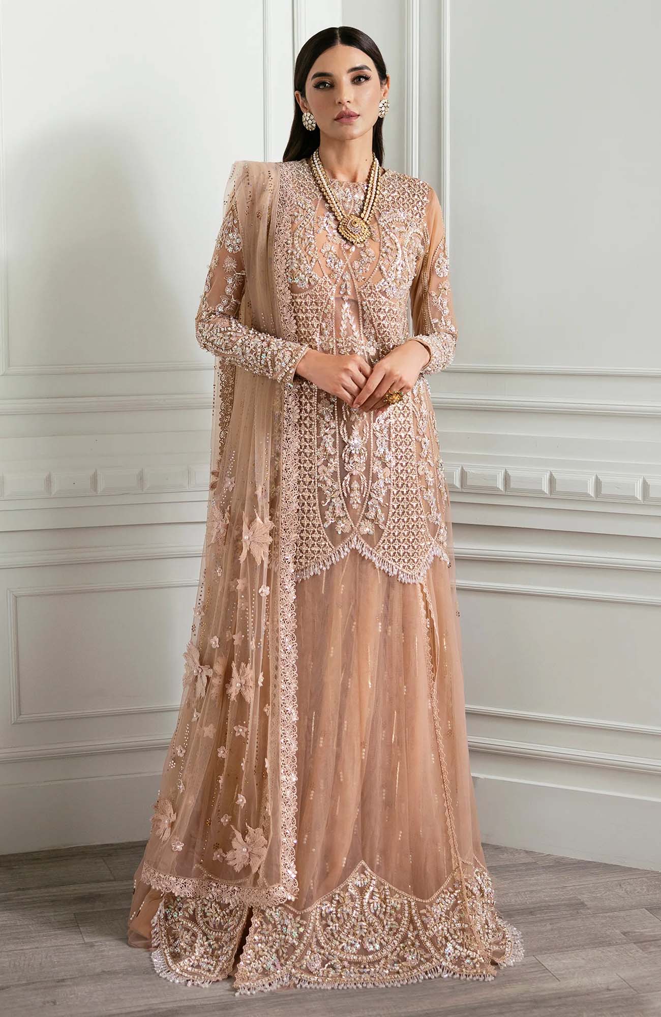 4.75 Meters Sequined, Embroidered And Crystal Encrusted Sharara Fabric On Tulle