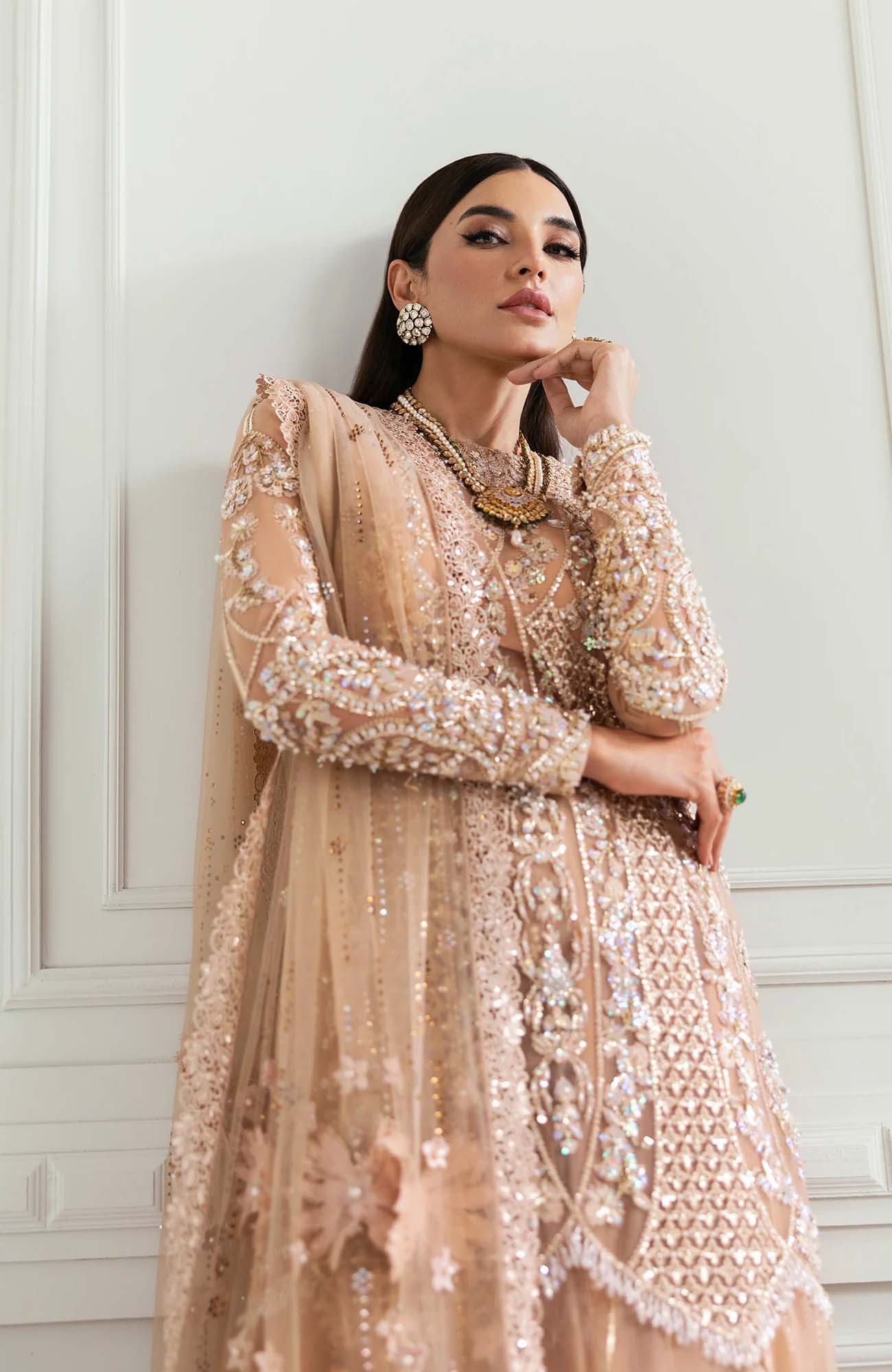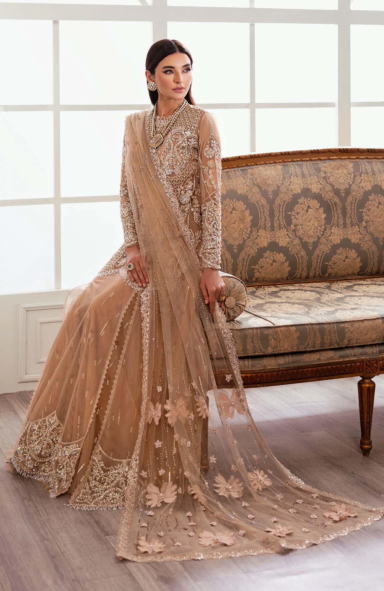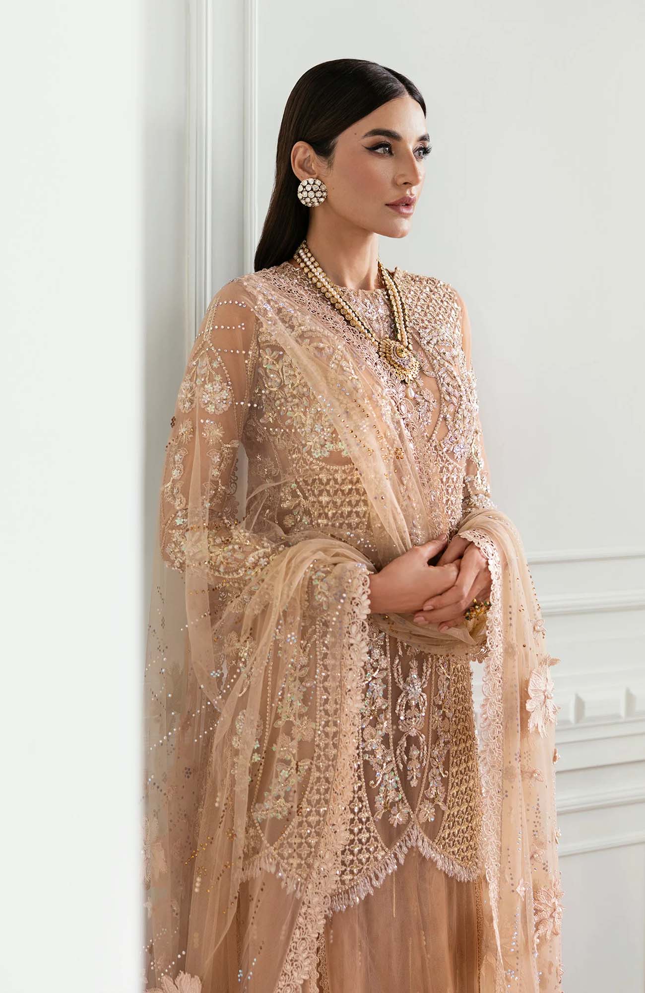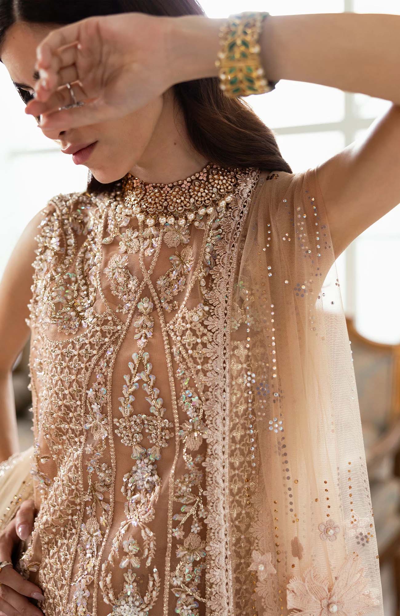 4.75 Meters Sequined, Embroidered And Crystal Encrusted Sharara Fabric On Tulle