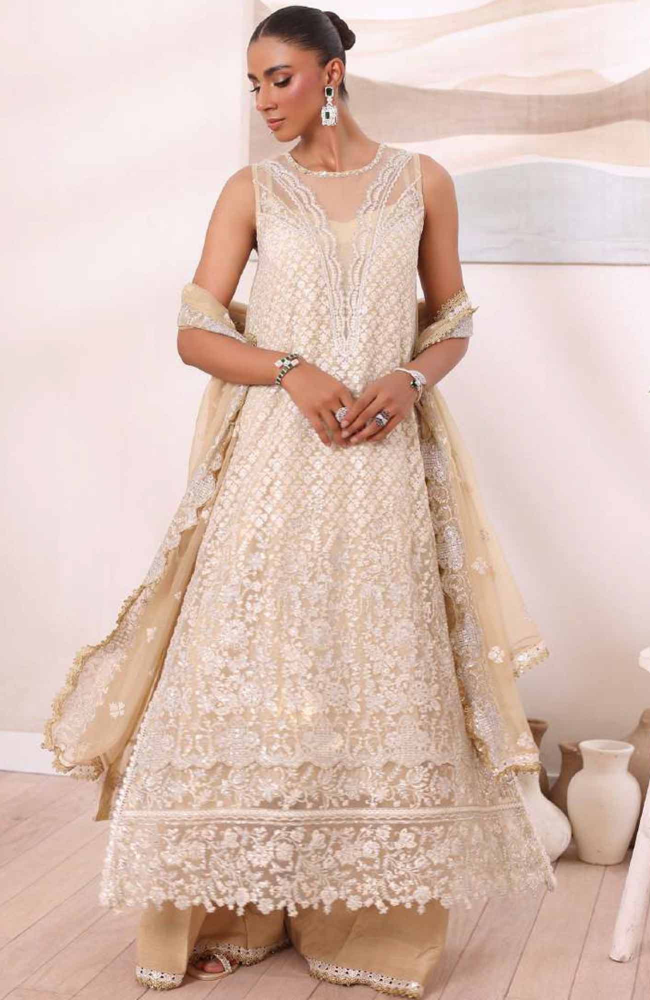 Sequin embroidered chiffon dupatta