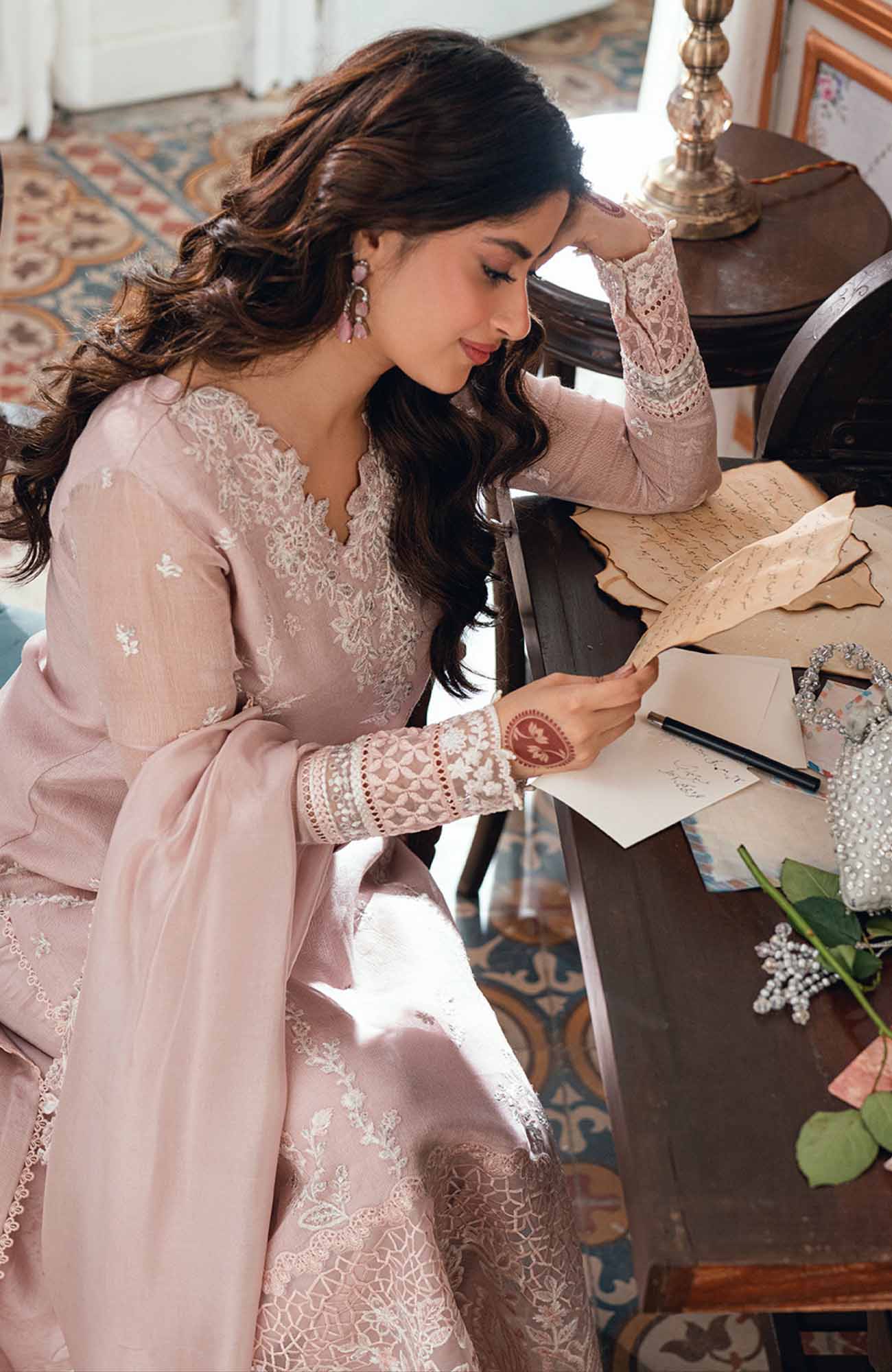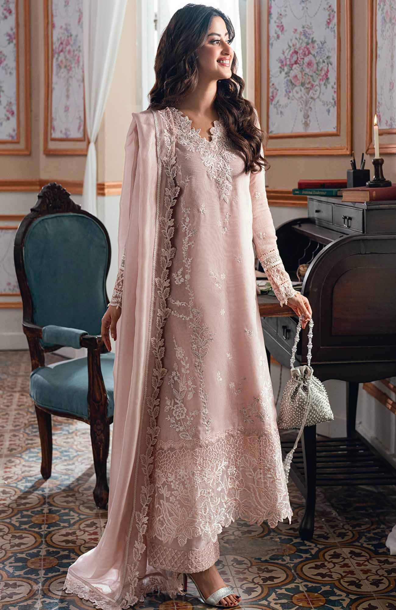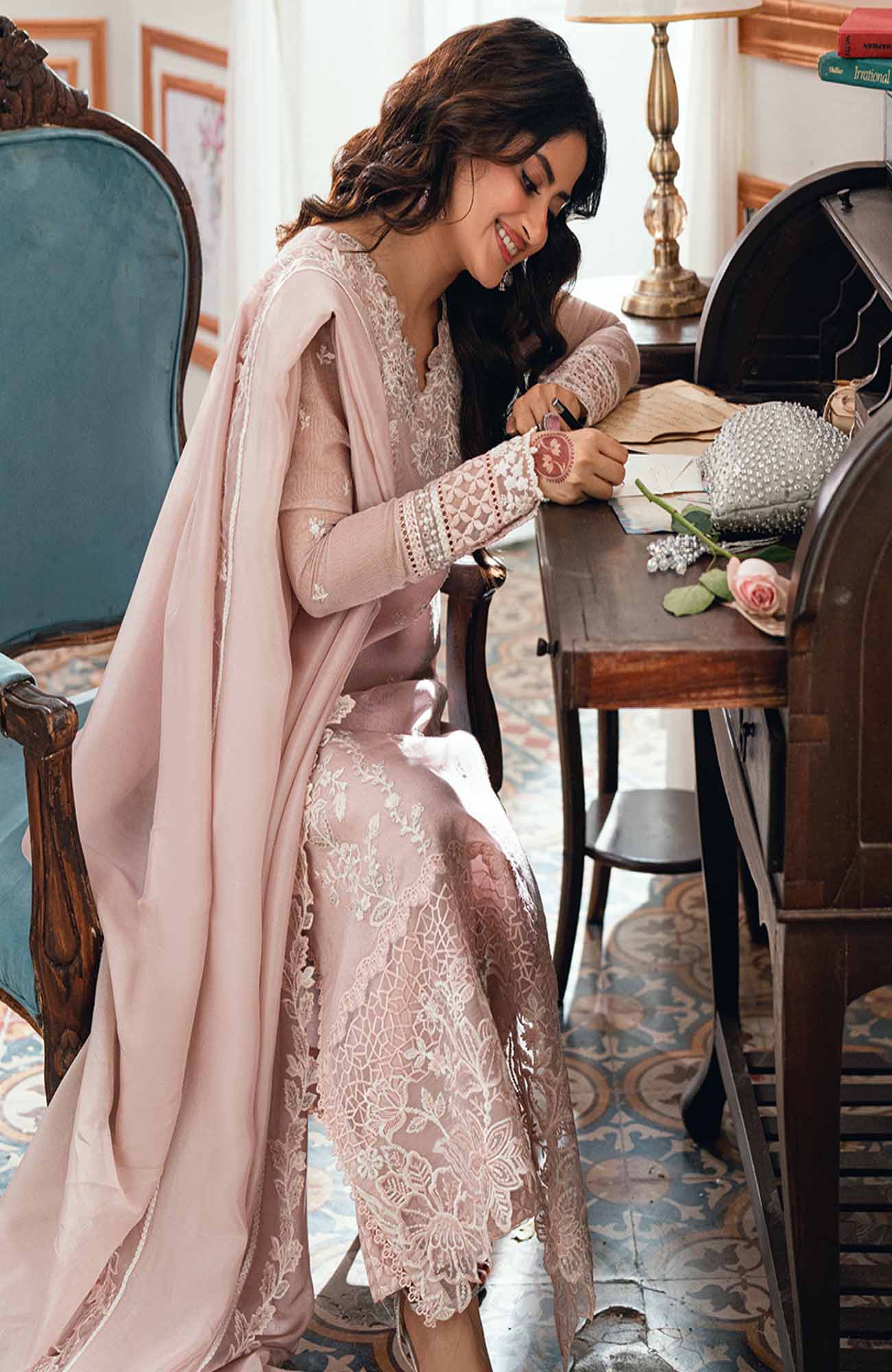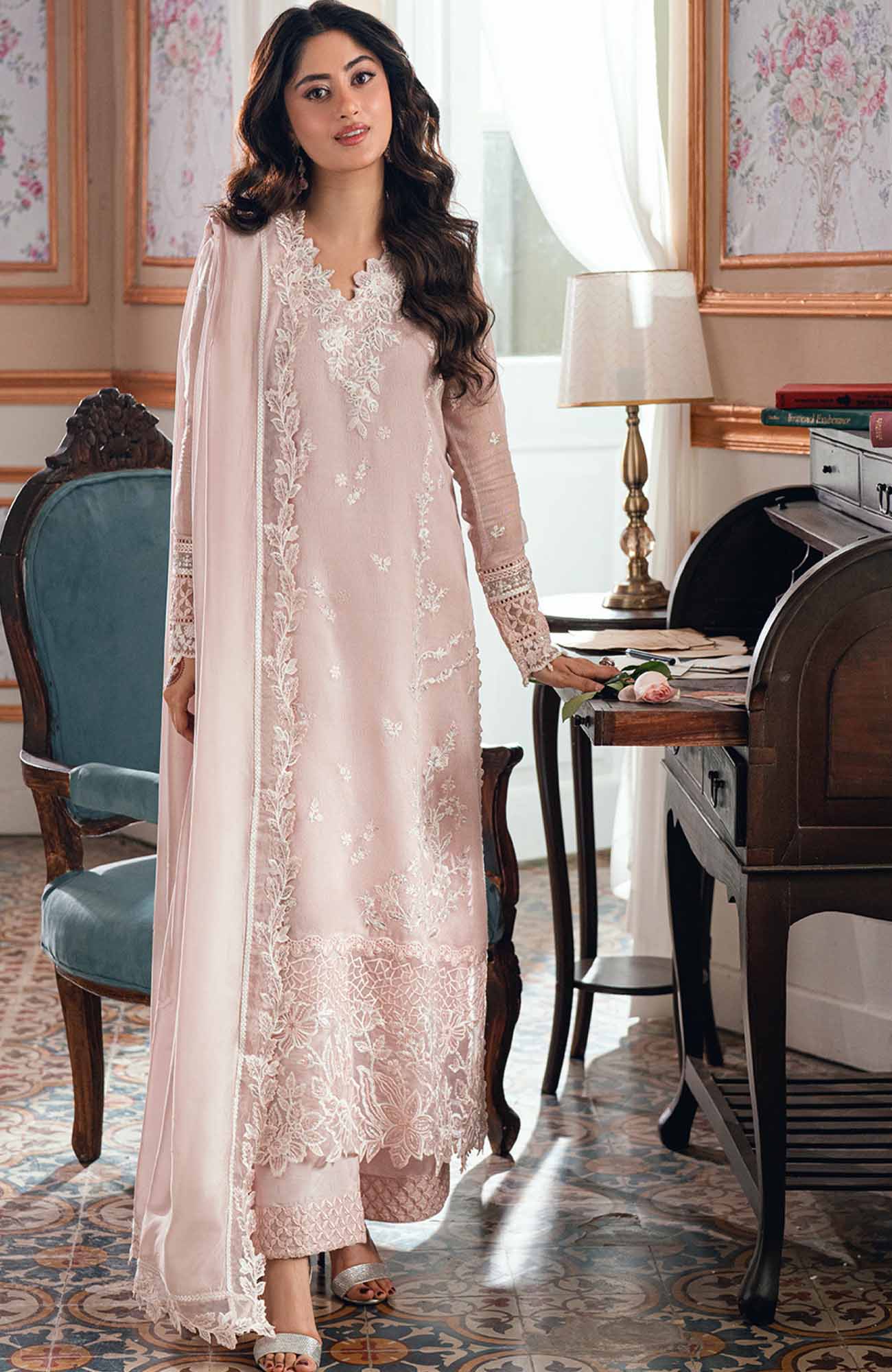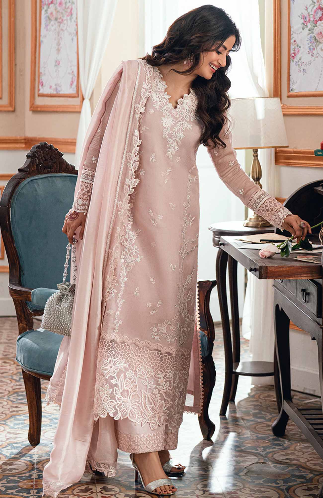 Eid Ensembles By Azure Unstitched Lawn Embroidered 3 Piece Suit - AZRESL139- Rosebud - Summer Collection