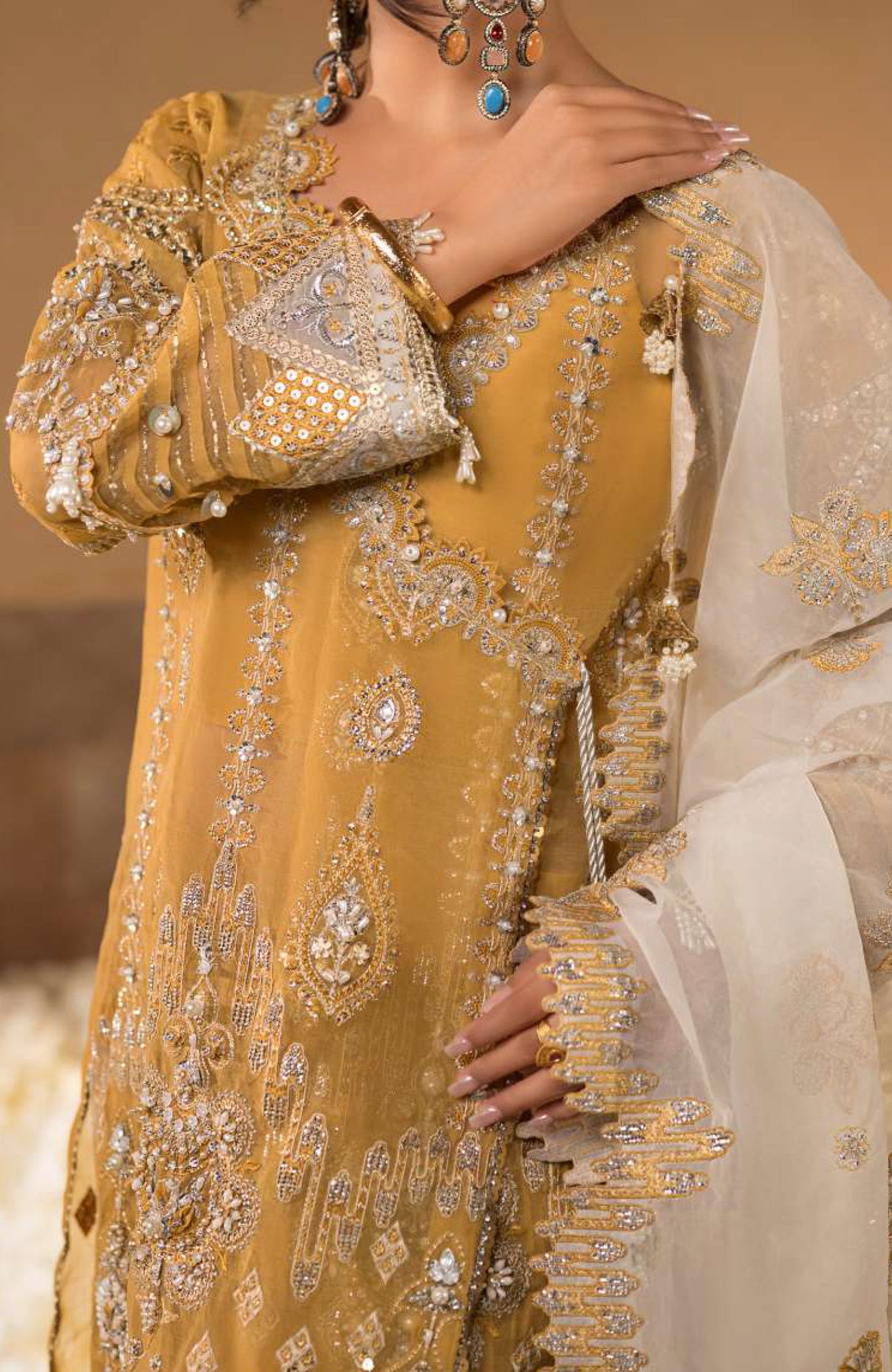 Embroidered Organza Hand Embellished Front