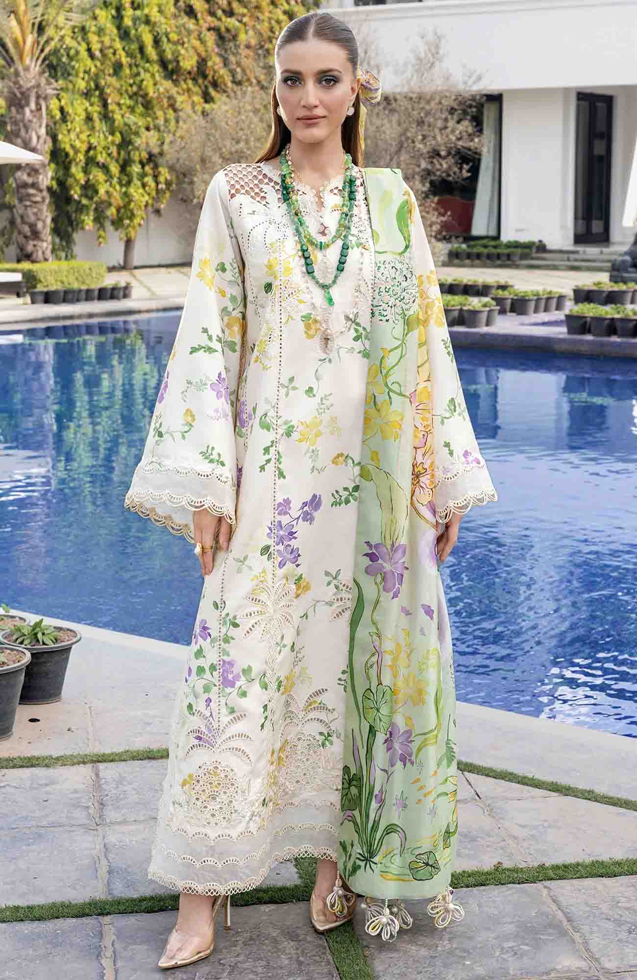 Flow Luxury by Crimson Unstitched Lawn Embroidered 3 Piece Suits -CRMFLXL-4A - Tropic Tease - Summer Collection