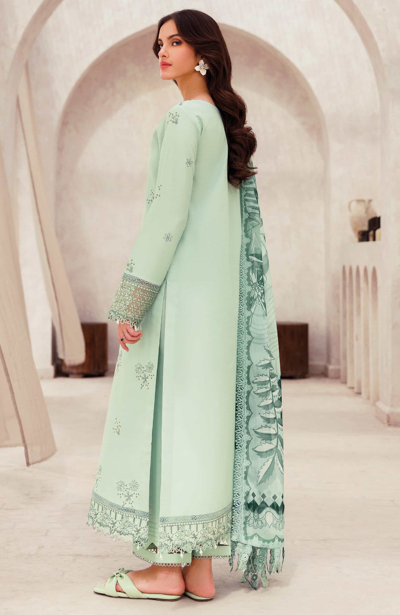 DESCRIPTION:Embroidered Lawn Front (1.40 Yards)Embroidered Lawn SleevesEmbroidered Lawn Front & Back Border (2 Yards)Embroidered Organza Sleeves Border (1 Yard)Plain Lawn Back(1.40 Yards)Digital Printed Chiffon Dupatta (2.75 Yards)Dyed Cotton Trouser (2.75 Yards)