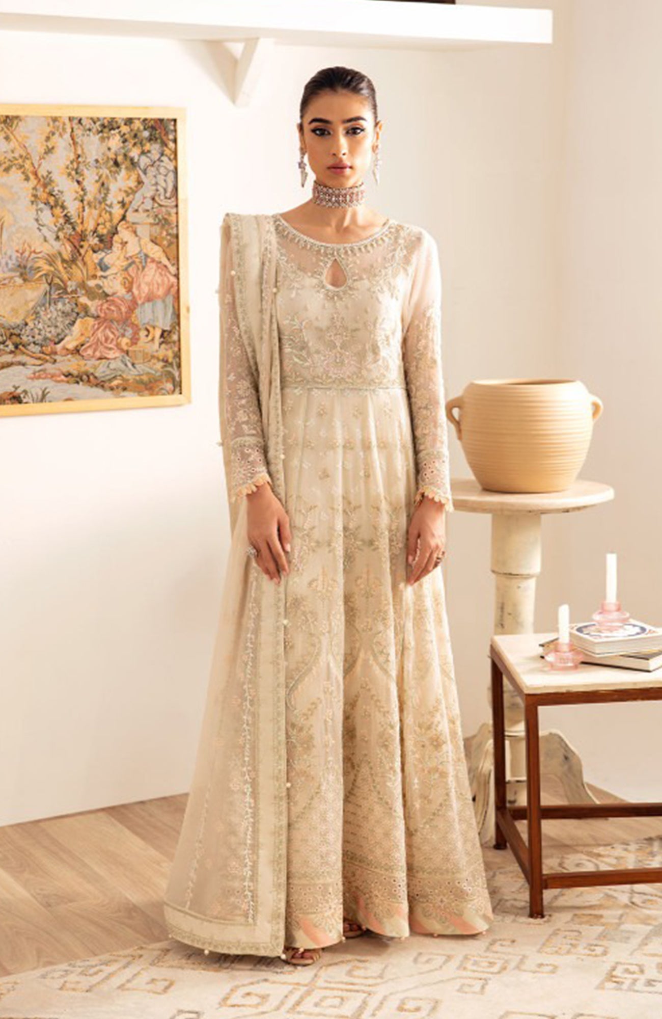 Embroidered & sequinned chiffon panels for kalidaar