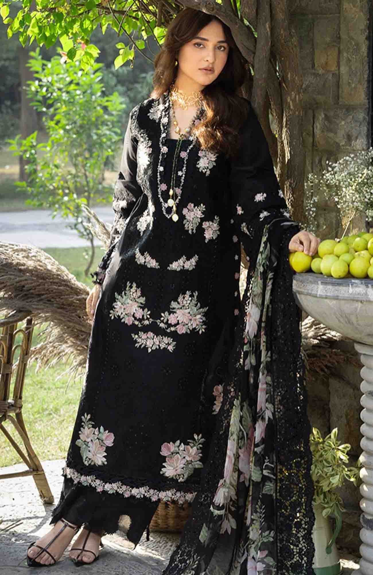 Luxury By Elaf Unstitched Lawn Embroidered 3 Piece Suit - ELFLXL-2B- Midnight Blossom - Summer Collection