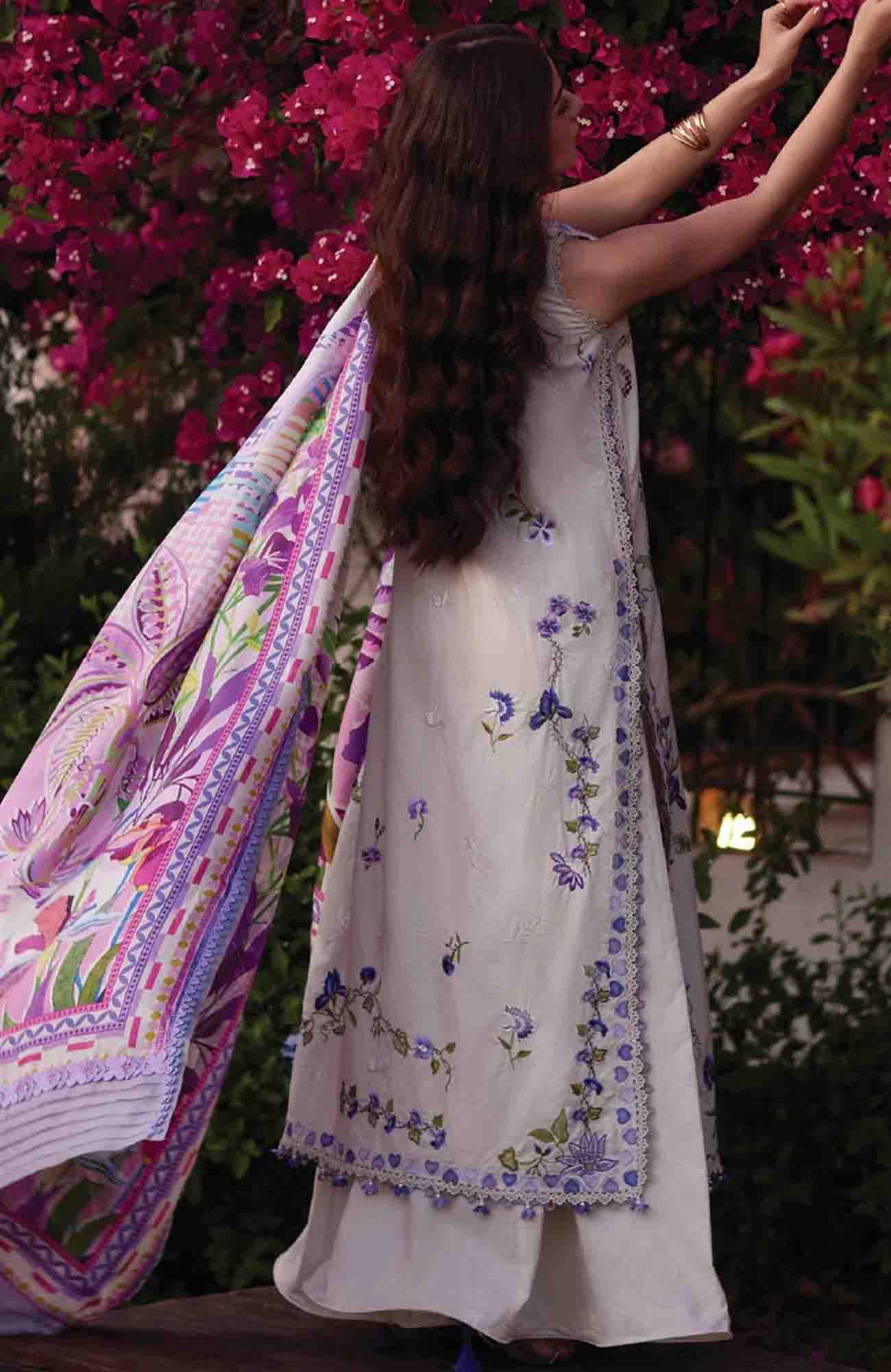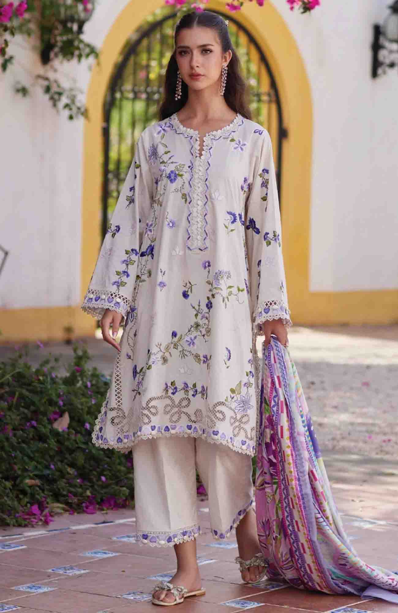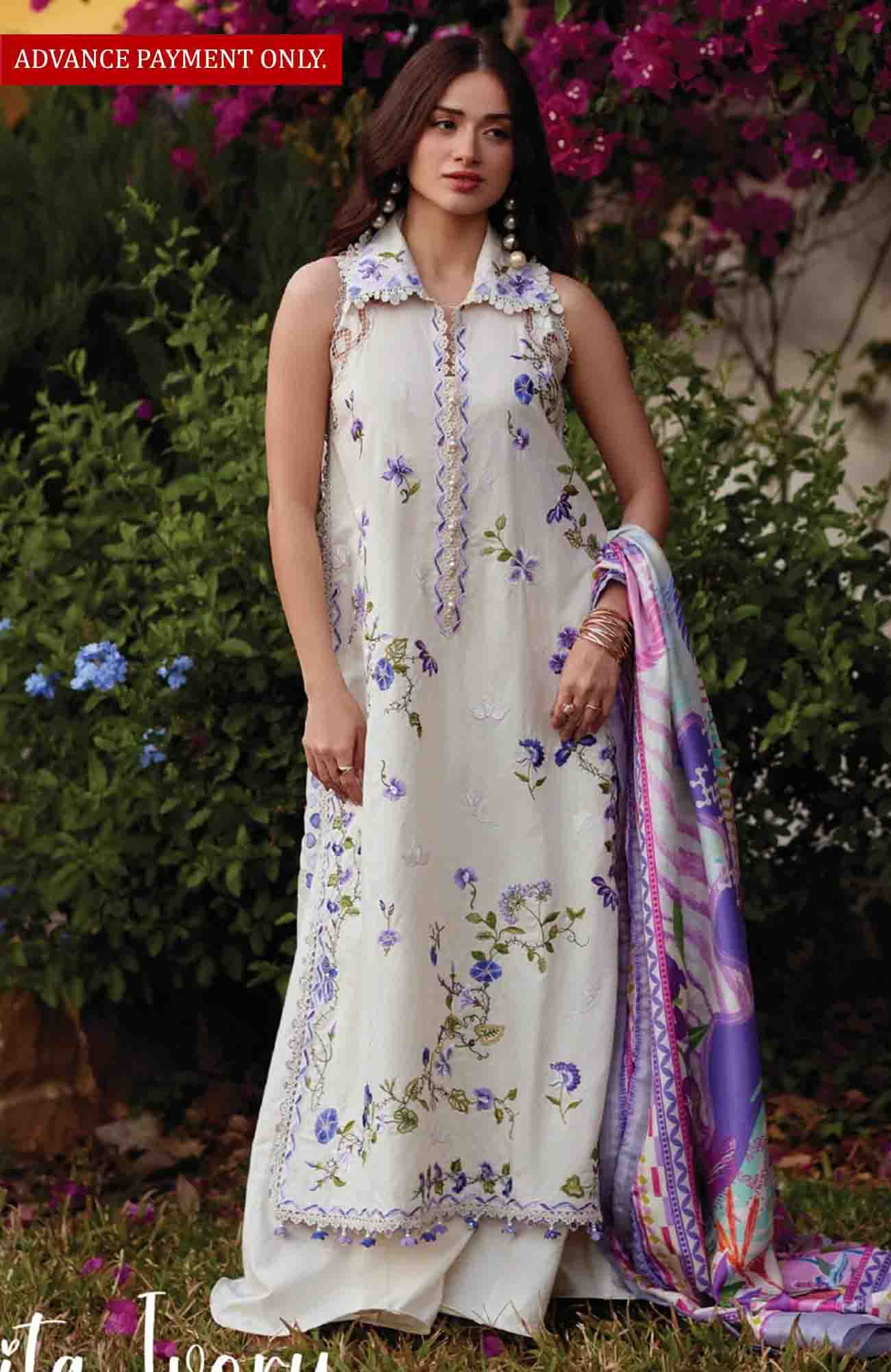 Luxury Lawn By Farah Talib Aziz Unstitched Lawn Embroidered 3 Piece Suit - FTALXL-01- Evita Ivory - Summer Collection