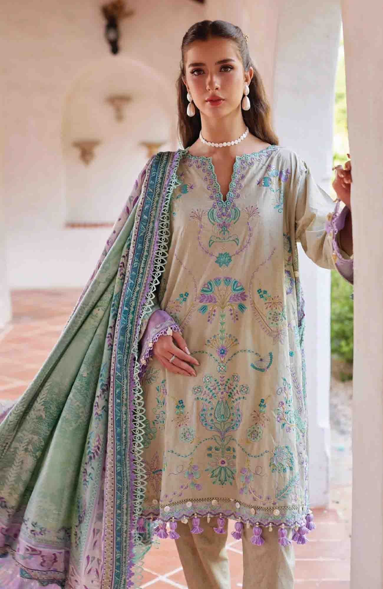 Luxury Lawn By Farah Talib Aziz Unstitched Lawn Embroidered 3 Piece Suit - FTALXL-07- Valeria Olive - Summer Collection