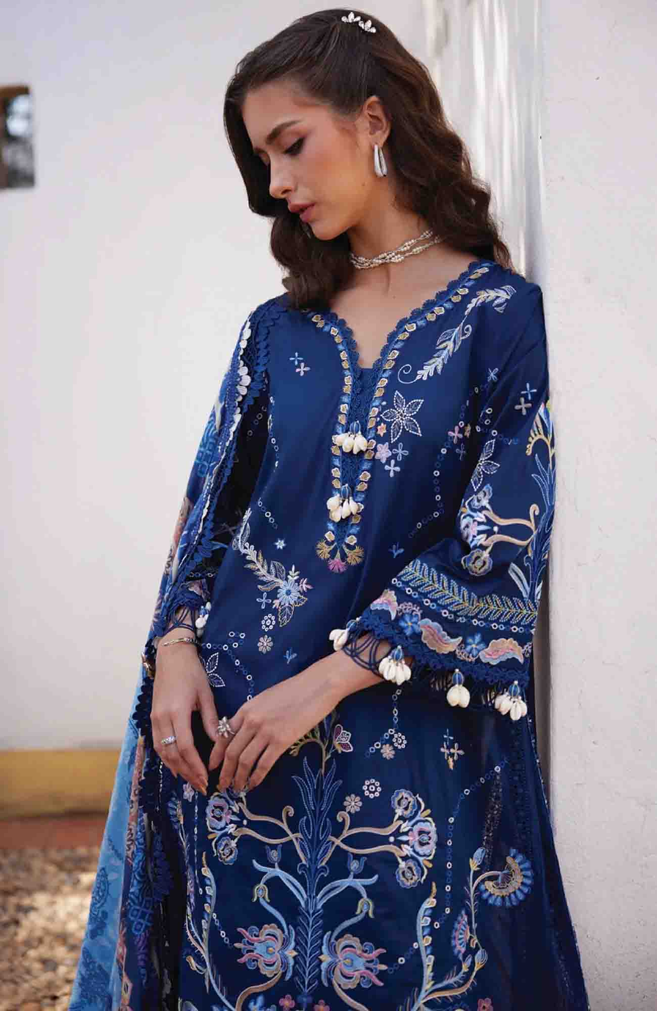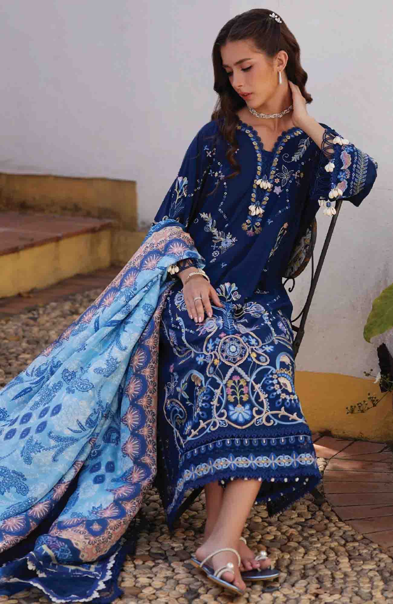 Luxury Lawn By Farah Talib Aziz Unstitched Lawn Embroidered 3 Piece Suit - FTALXL-08- Nia Navy - Summer Collection