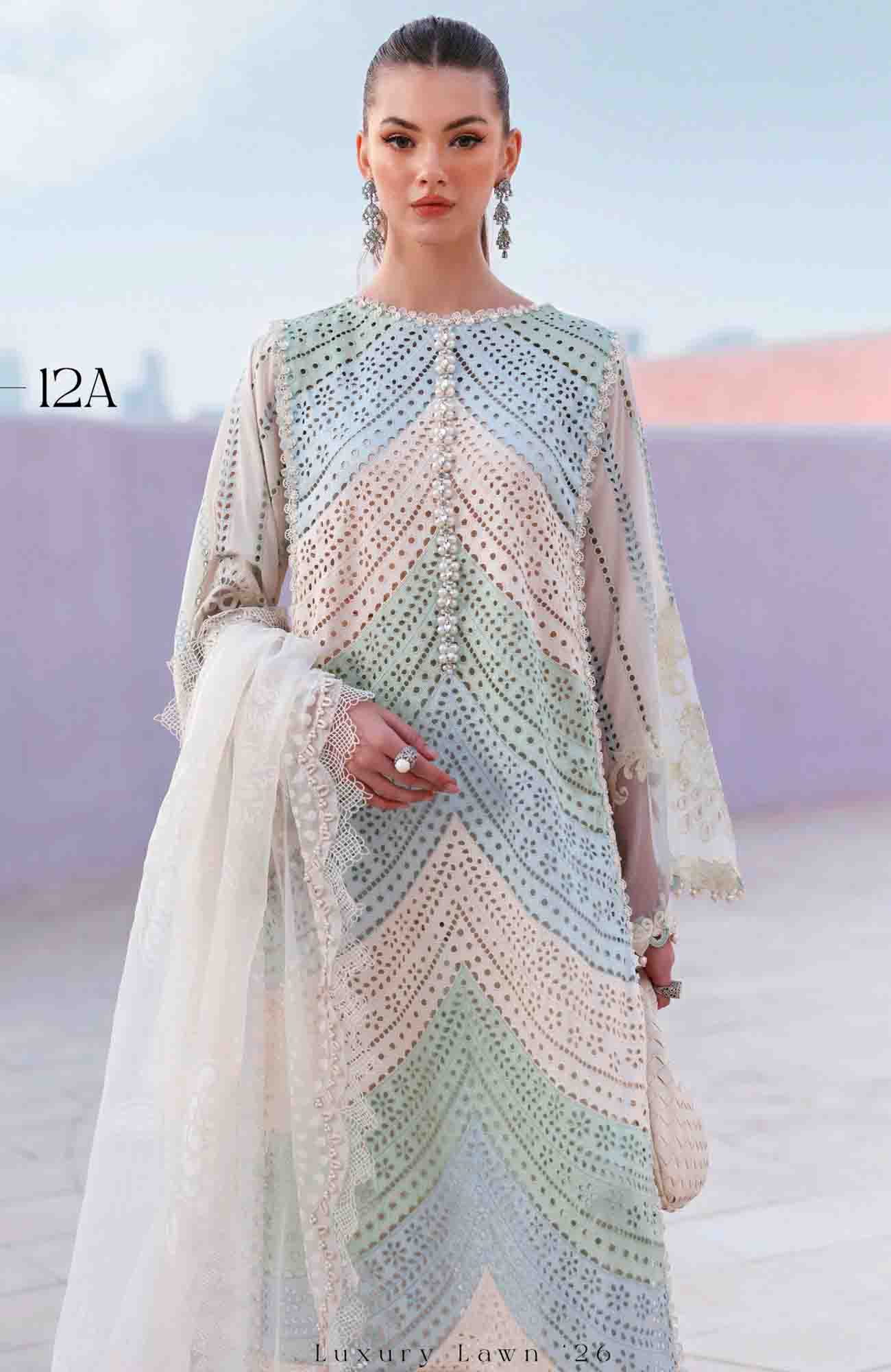 Luxury Lawn By Maria B Unstitched Lawn Embroidered 3 Piece Suit - MBLXL-12A- Summer Collection