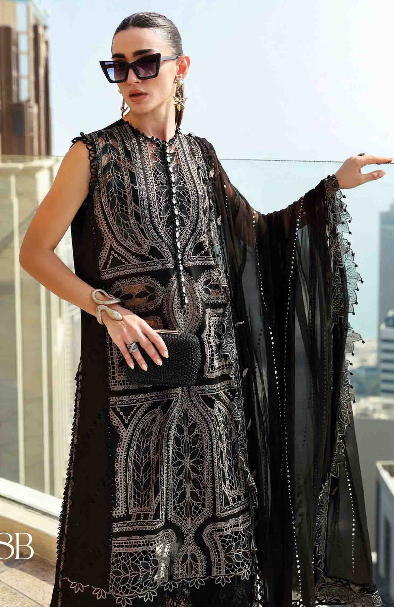 Luxury Lawn By Maria B Unstitched Lawn Embroidered 3 Piece Suit - MBLXL-8B- Summer Collection