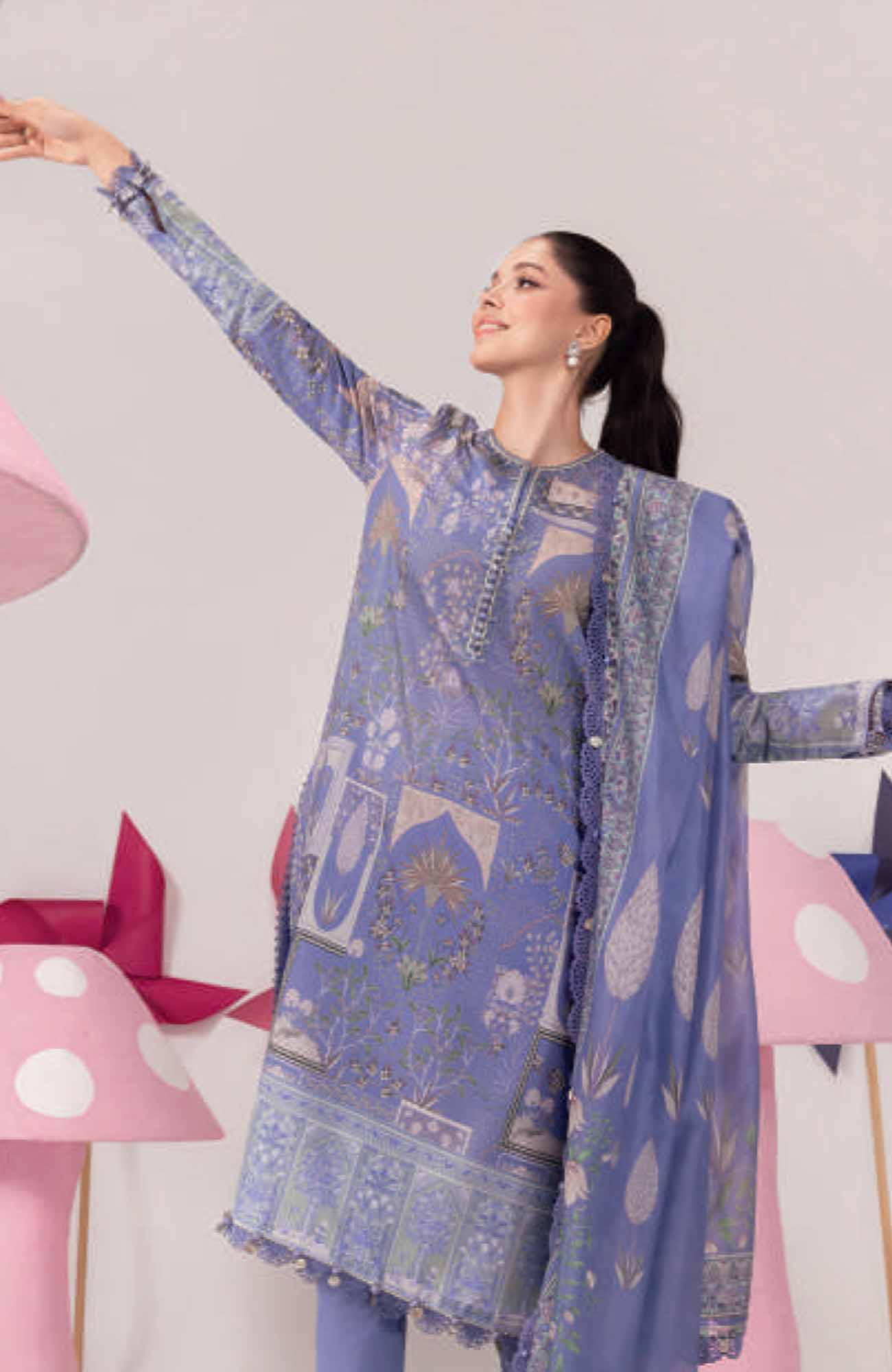 Mbasic by Maria B Unstitched Lawn Embroidered 3 Piece Suit - MBSCL-11B - Summer Collection