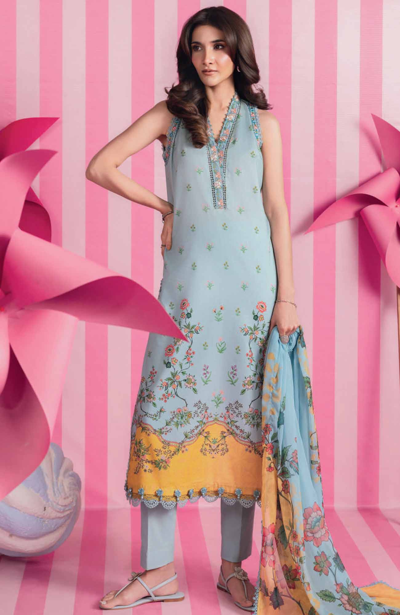 Mbasic by Maria B Unstitched Lawn Embroidered 3 Piece Suit - MBSCL-1B - Summer Collection