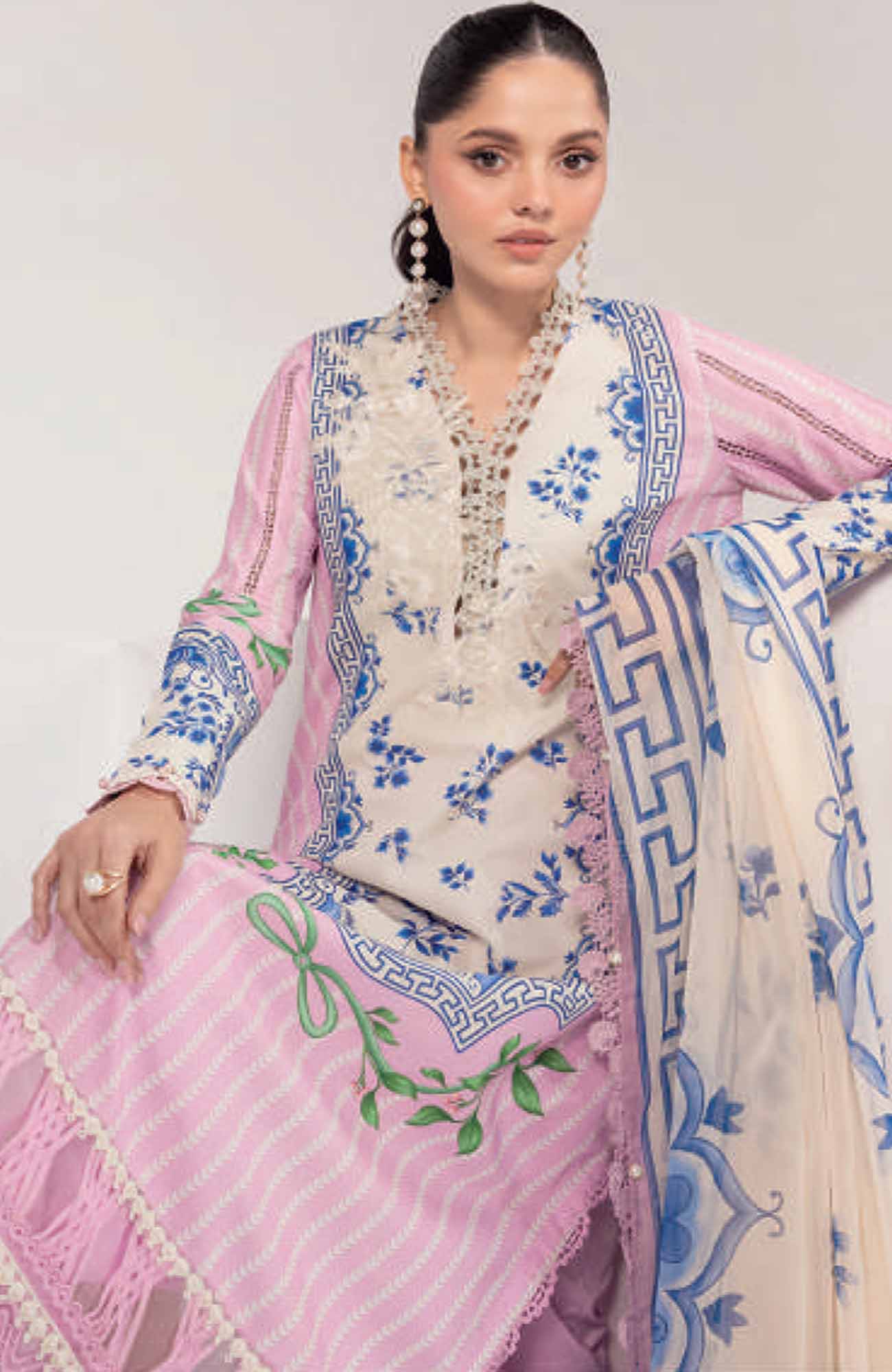Mbasic by Maria B Unstitched Lawn Embroidered 3 Piece Suit - MBSCL-9B - Summer Collection