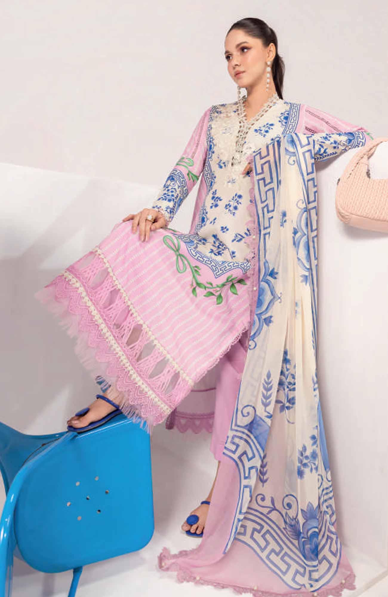 Mbasic by Maria B Unstitched Lawn Embroidered 3 Piece Suit - MBSCL-9B -  Summer Collection