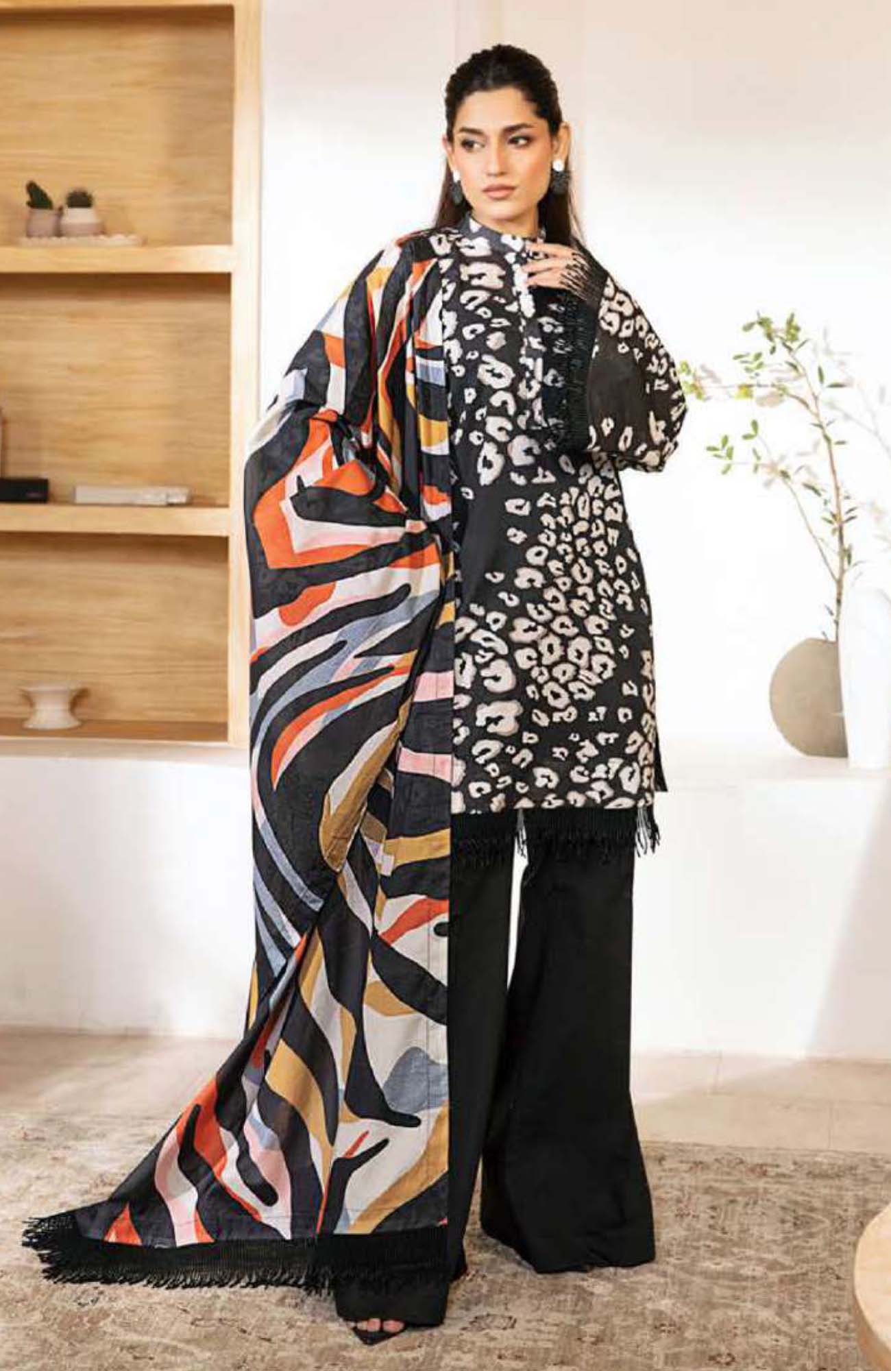 M Basic Elaheh By Maria B Unstitched Lawn Printed 3 Piece Suit - MBSCELPL07 - Summer Collection
