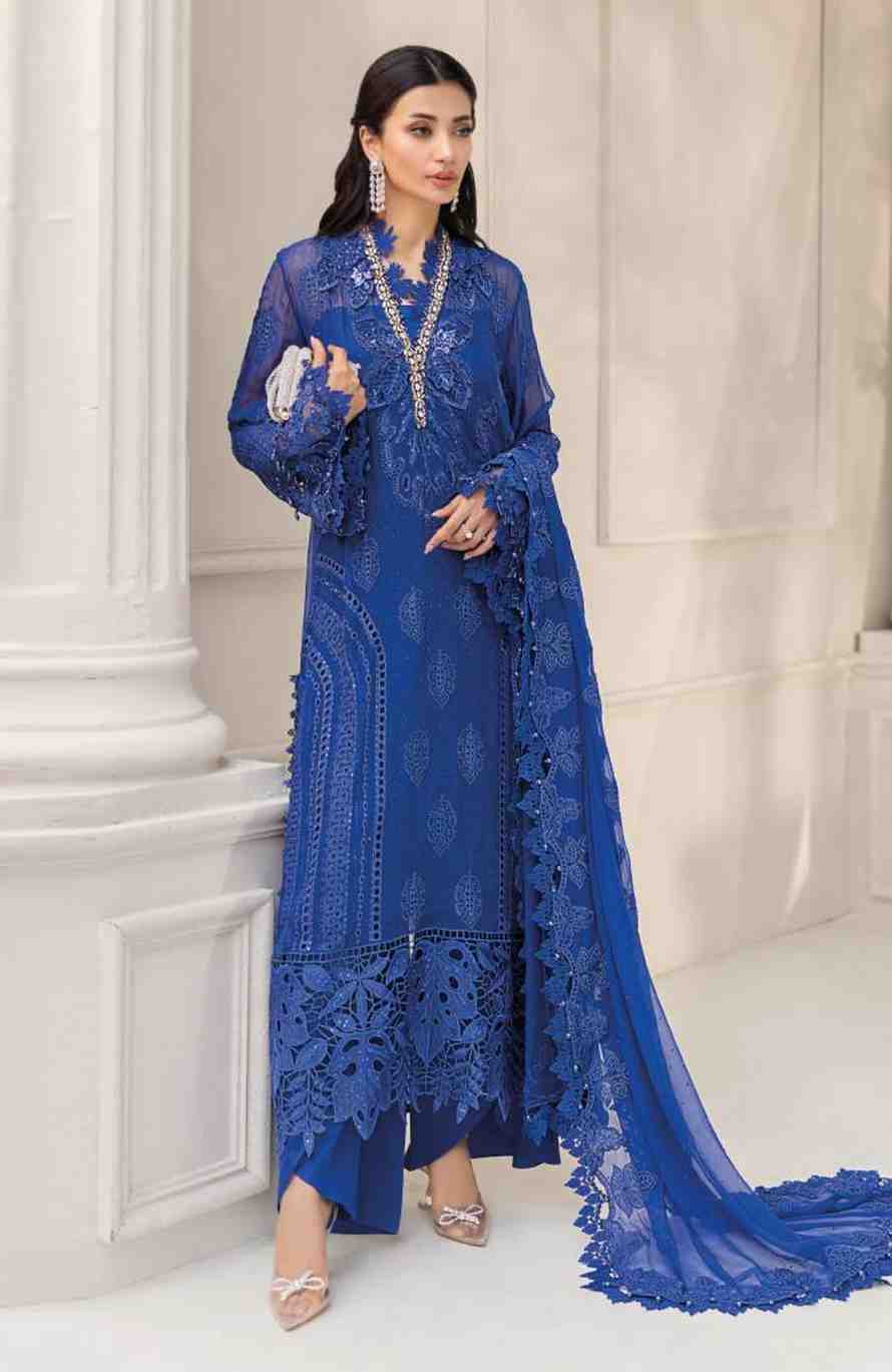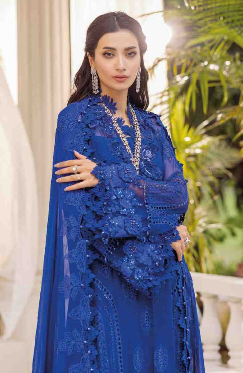 Embroidered Chiffon Center Panel With 3D Flowers Hand Embellishment & Diamantes