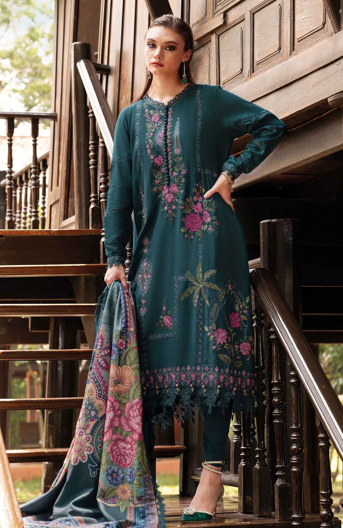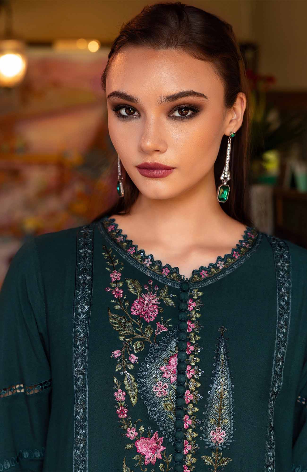 DESCRIPTION:Color: TealShirtEmbroidered Twill Linen Center PanelEmbroidered Twill Linen Front R+L PanelsEmbroidered Twill Linen PattiDyed Twill Linen Back & SleevesTrouserDyed Linen TrouserShawlPrinted Wool Shawl