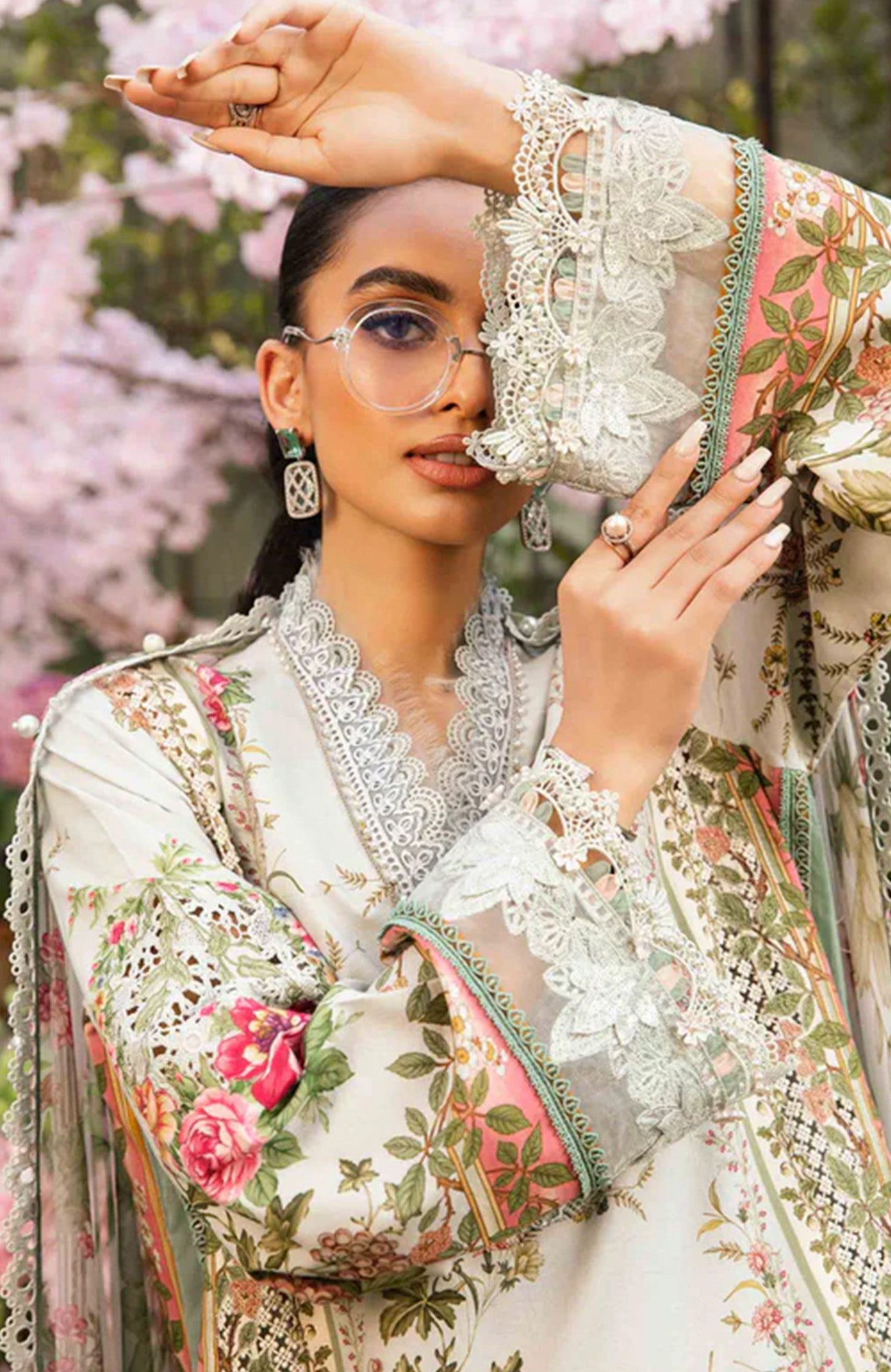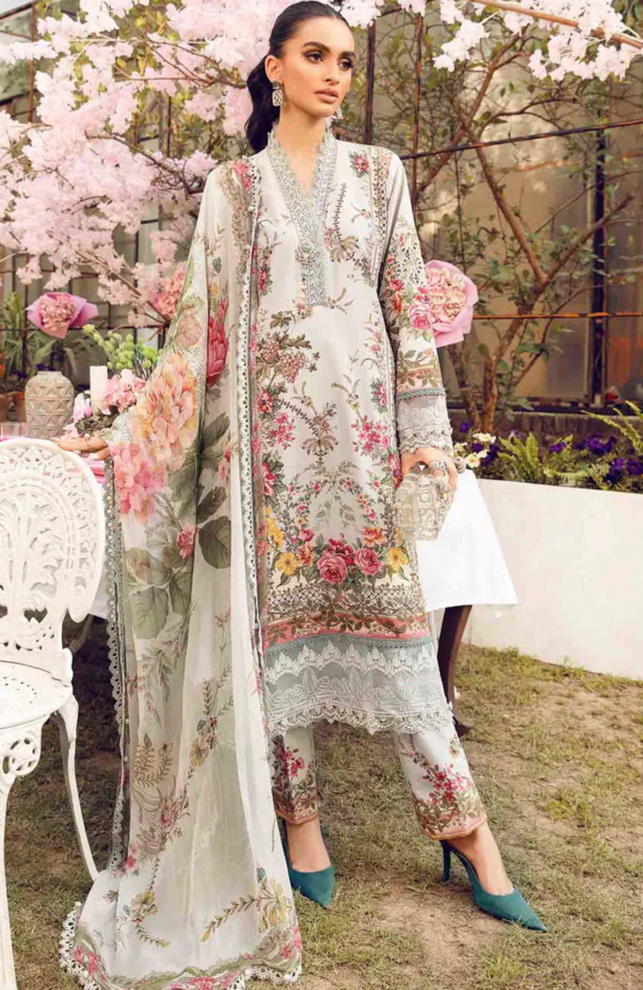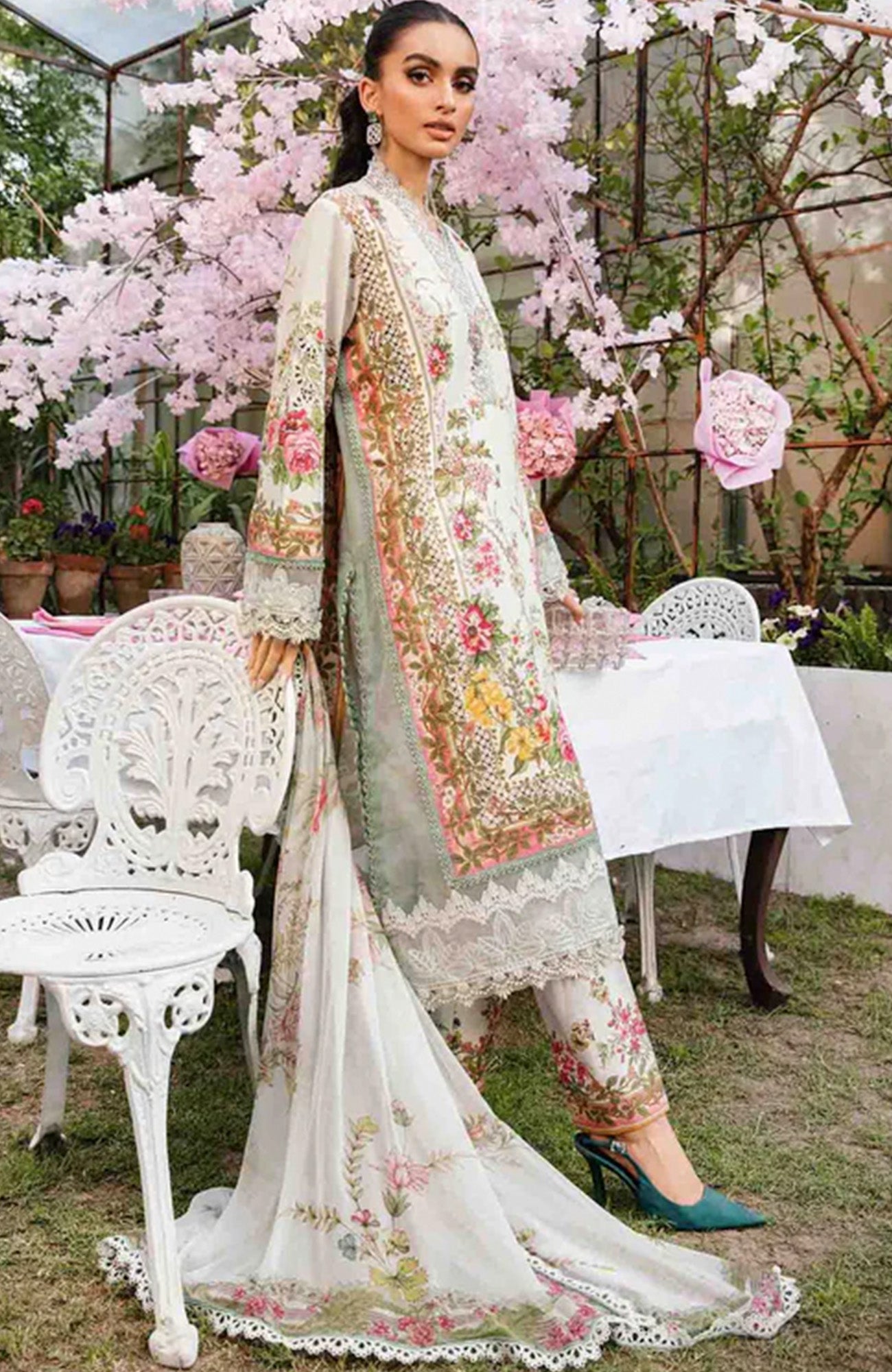 DESCRIPTION:ShirtPrinted Lawn ShirtEmbroidered Organza Patti 1Embroidered Organza Patti 23D Neck Patti FlowersTrousersPrinted Cambric TrousersDupattaPrinted Chiffon Dupatta