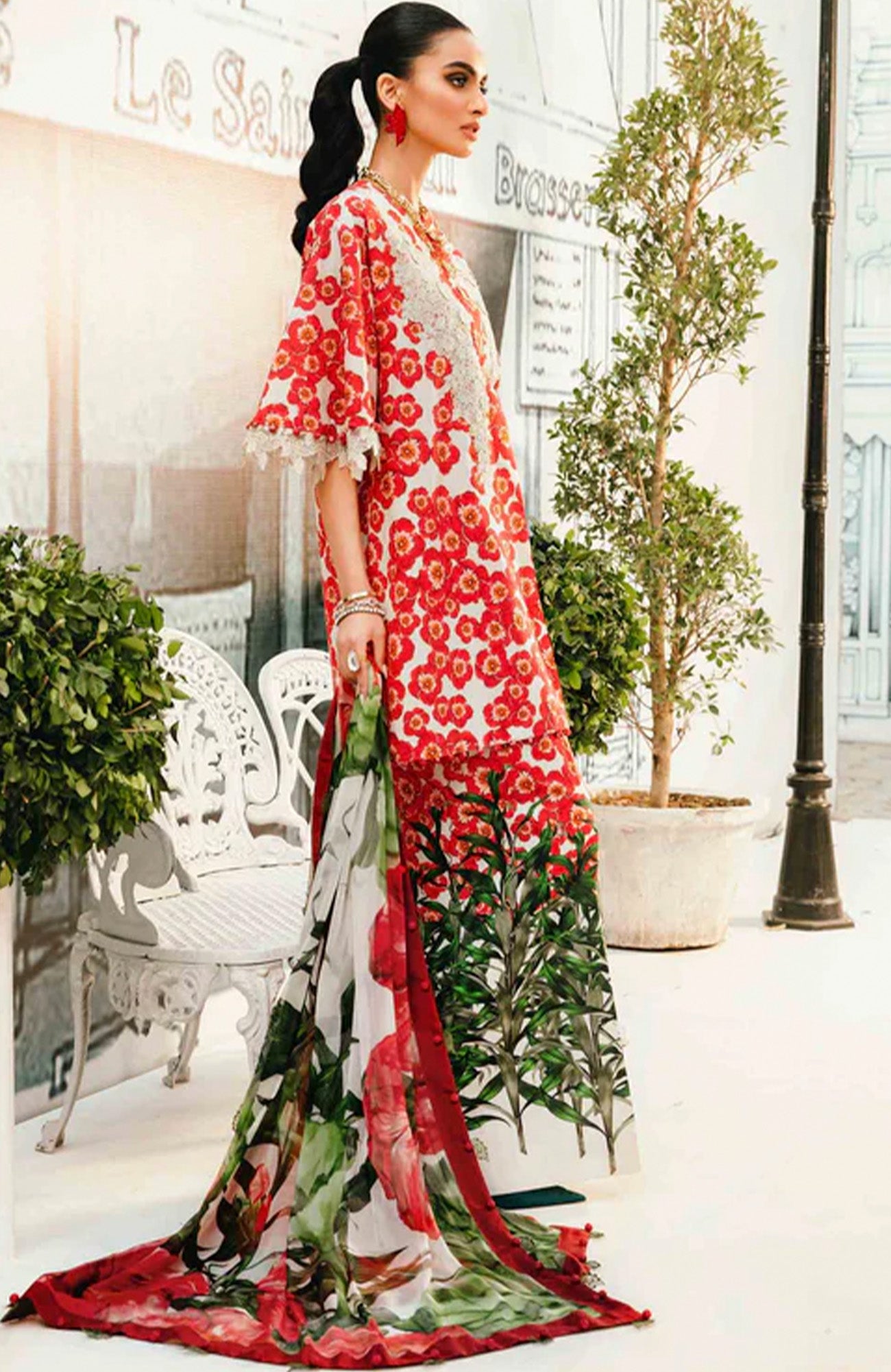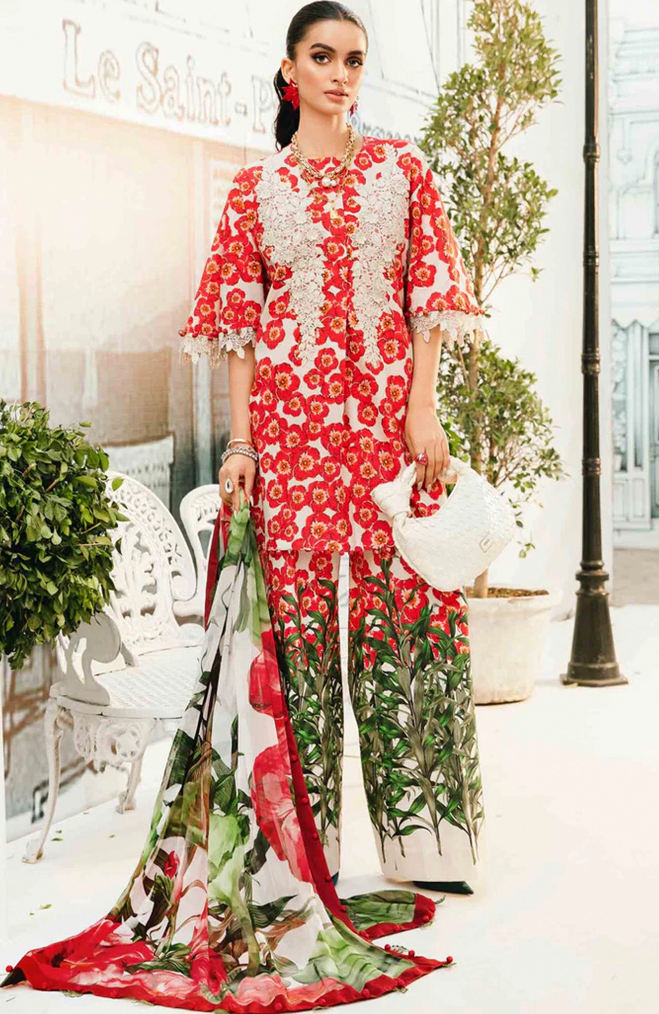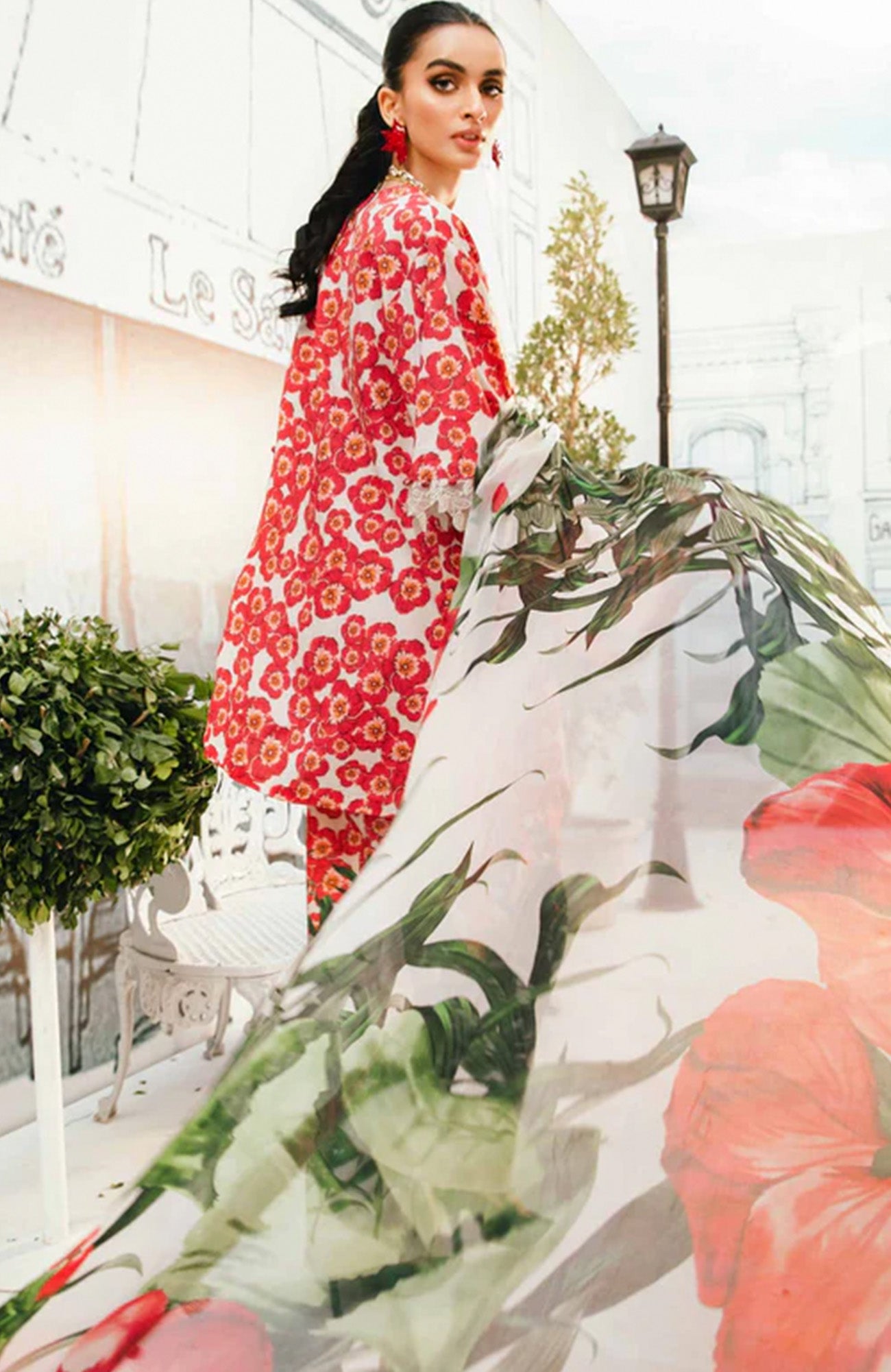 DESCRIPTION:ShirtPrinted Lawn ShirtEmbroidered Neckline With 3D MotifsEmbroidered PattiTrousersPrinted Cambric TrousersDupattaPrinted Chiffon Dupatta