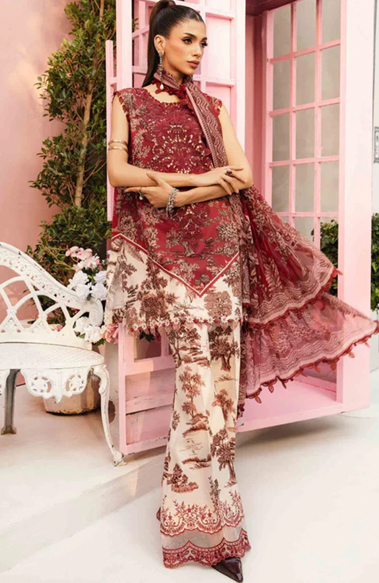 DESCRIPTION:ShirtPrinted Lawn ShirtEmbroidered NecklineEmbroidered Organza PattiTrousersPrinted Cambric TrousersDupattaPrinted Chiffon Dupatta