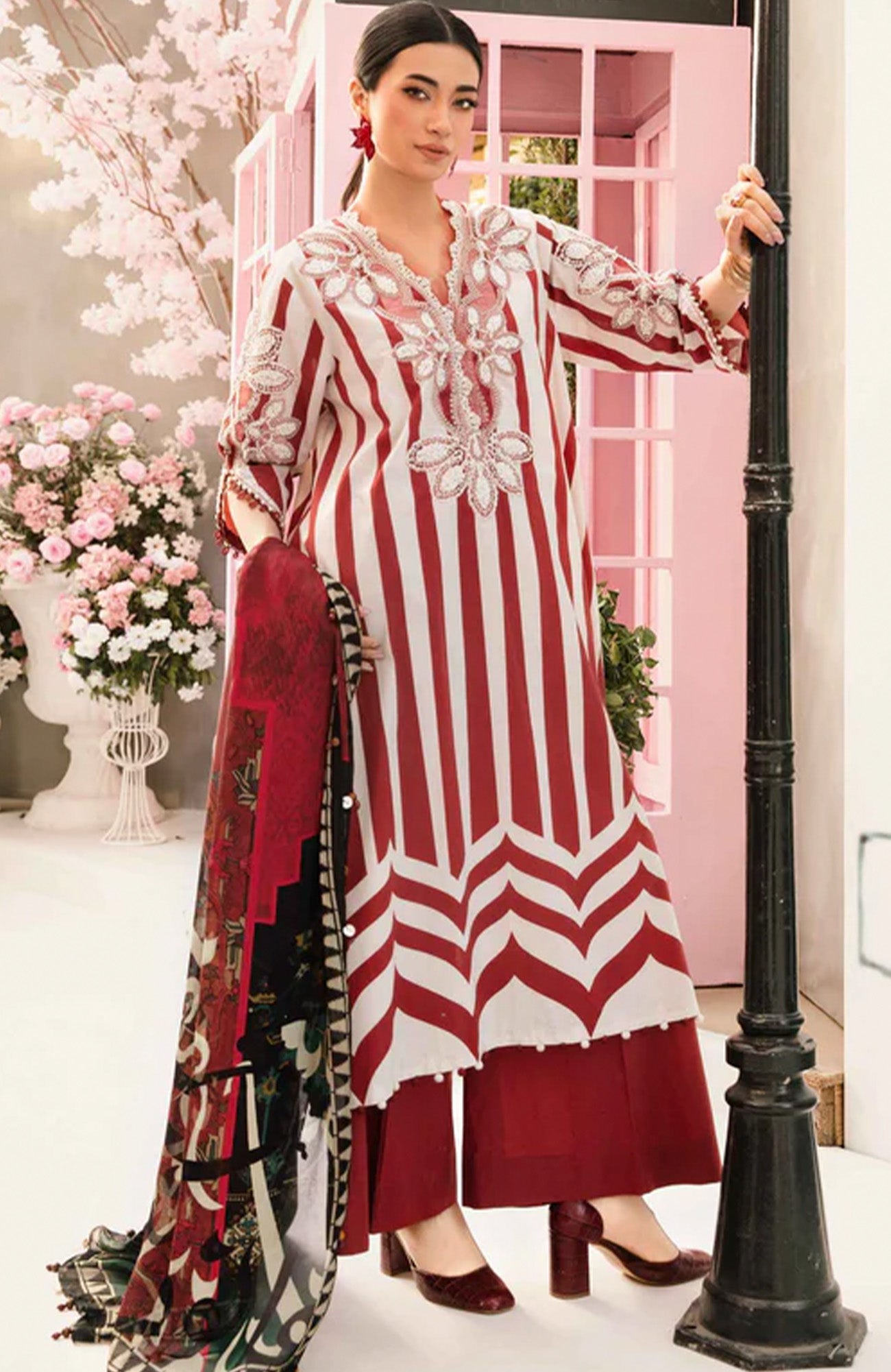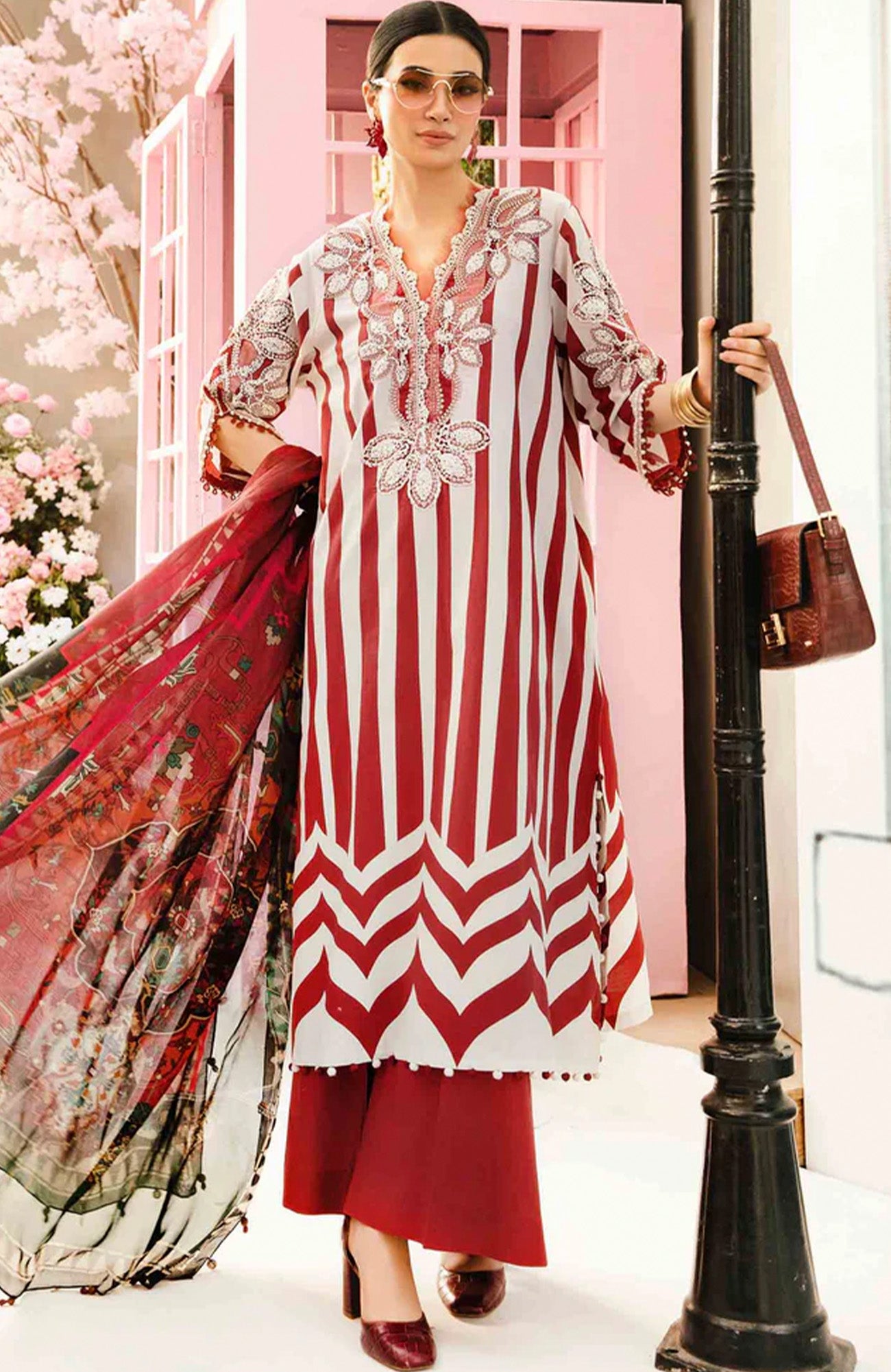 DESCRIPTION:ShirtPrinted Lawn FrontPrinted Lawn Back & SleevesEmbroidered Organza NecklineEmbroidered Sleeve PatchesTrousersDyed Cambric TrousersDupattaPrinted Chiffon Dupatta