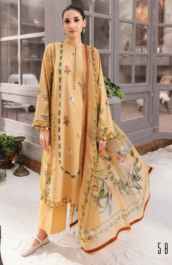 DESCRIPTION:ShirtDigital Printed Shirt 1.88mFabric: Marina TwillTrouserDyed Trouser 2mFabric: LinenDupattaDigital Printed Dupatta 2.5mFabric: Cationic Chiffon