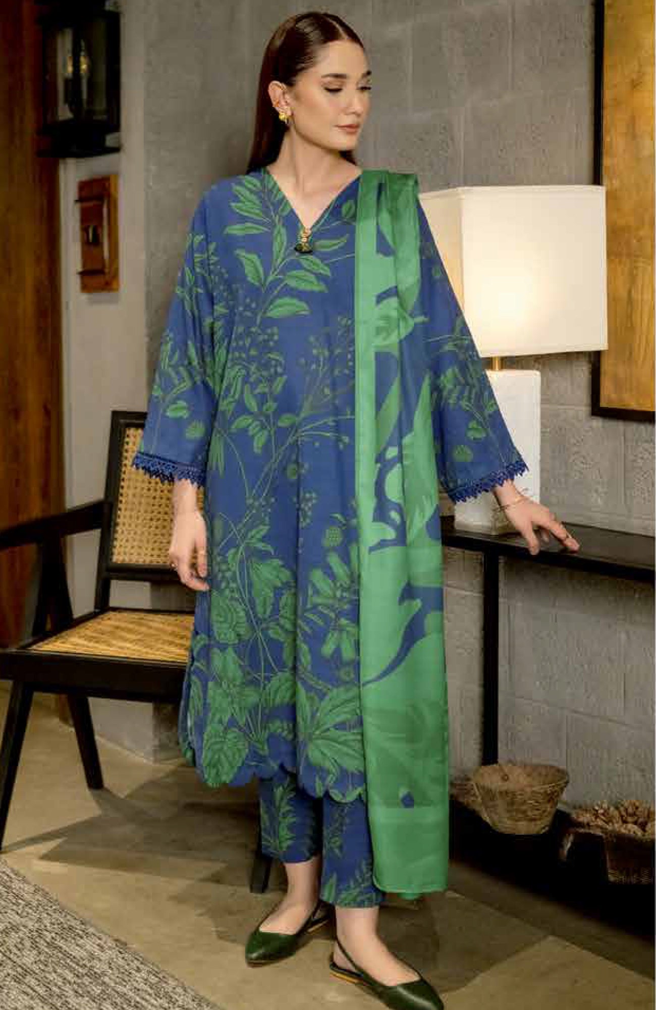 DESCRIPTION:Digital Printed Shirt 3.15 MetersColor: BlueFabric: Slub KhaddarTrousersDigital Printed Trouser 2.5 MetersColor: BlueFabric: Slub KhaddarShawlDigital Printed Shawl 2.5 MetersColor: BlueFabric: HerringboneNote: Dry Clean Only