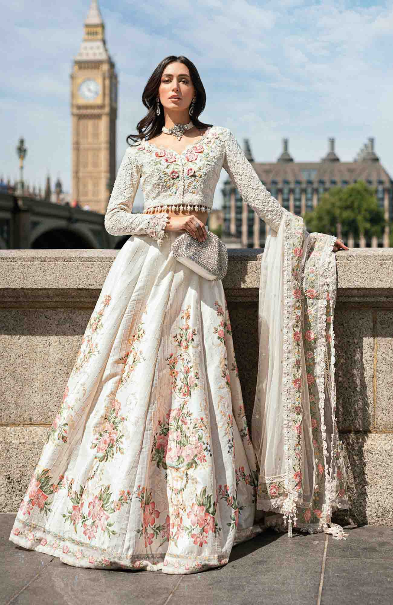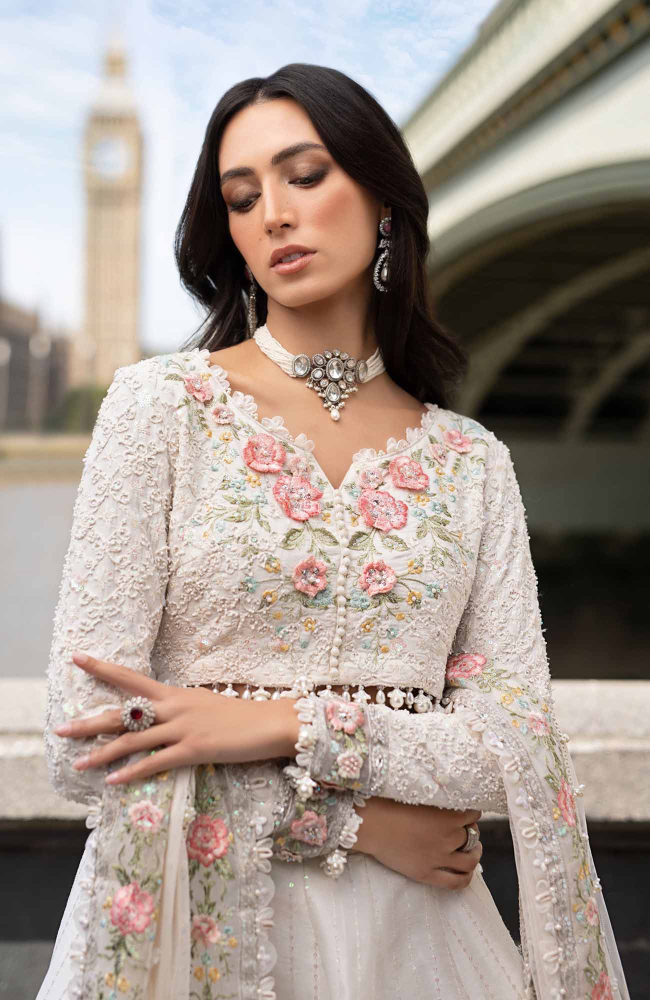 Embroidered Raw Silk Bodice Front With 3D Flowers