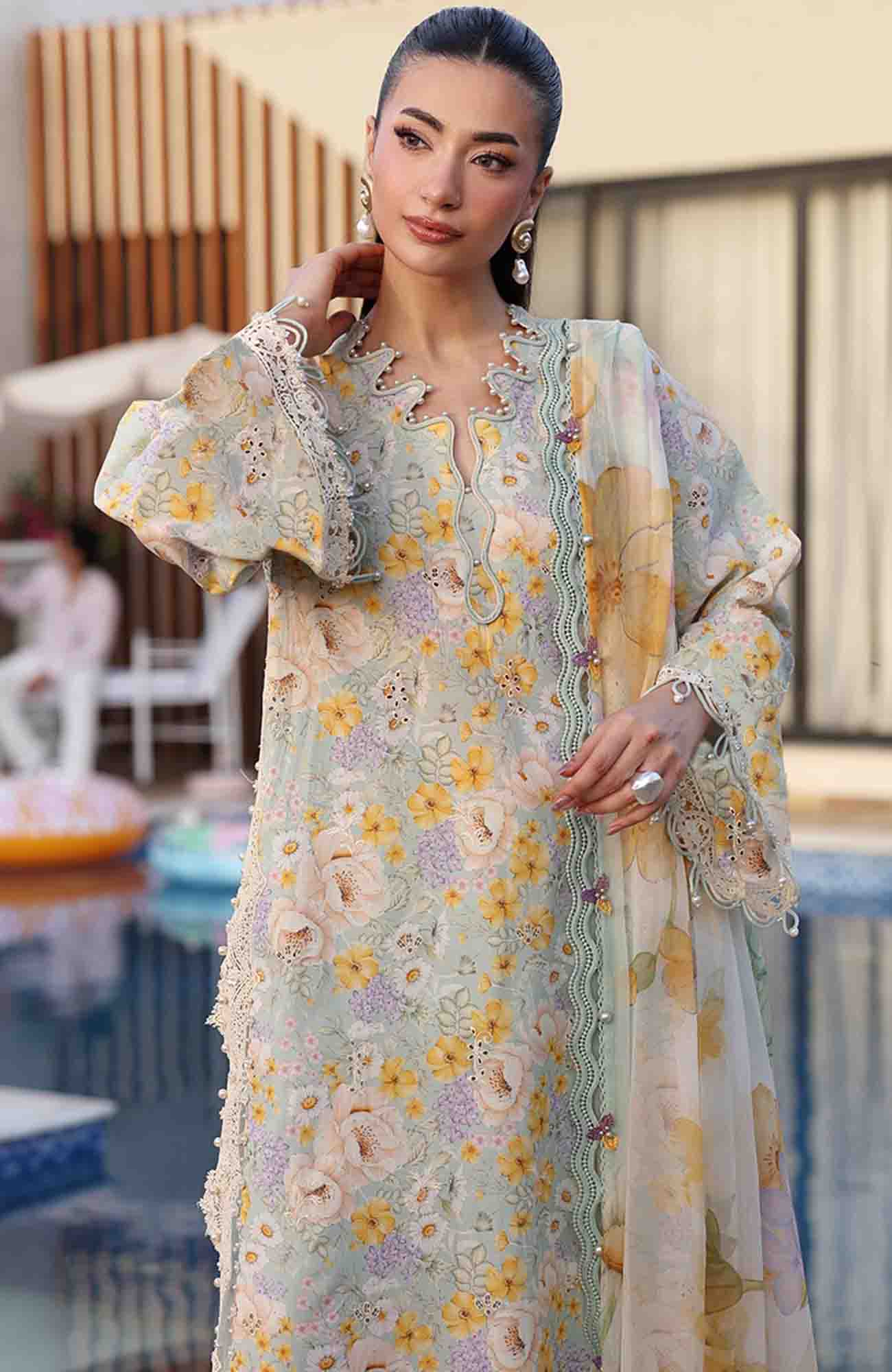 M Prints Eid II- By Maria B Unstitched Lawn Prints 3 Piece Suit - MBMPEIDII-7A- Summer Collection