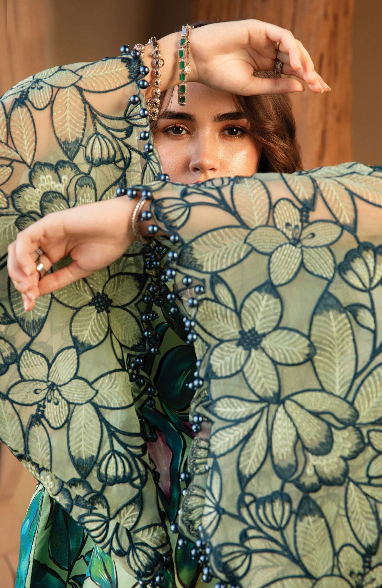 DESCRIPTION:ShirtPrinted ShirtOrganza Embroidered Patti IOrganza Embroidered Patti IIFabric: LawnColor: GreenTrousersDyed TrouserFabric: CambricColor: GreenDupattaPrinted DupattaFabric: ChiffonColor: Green