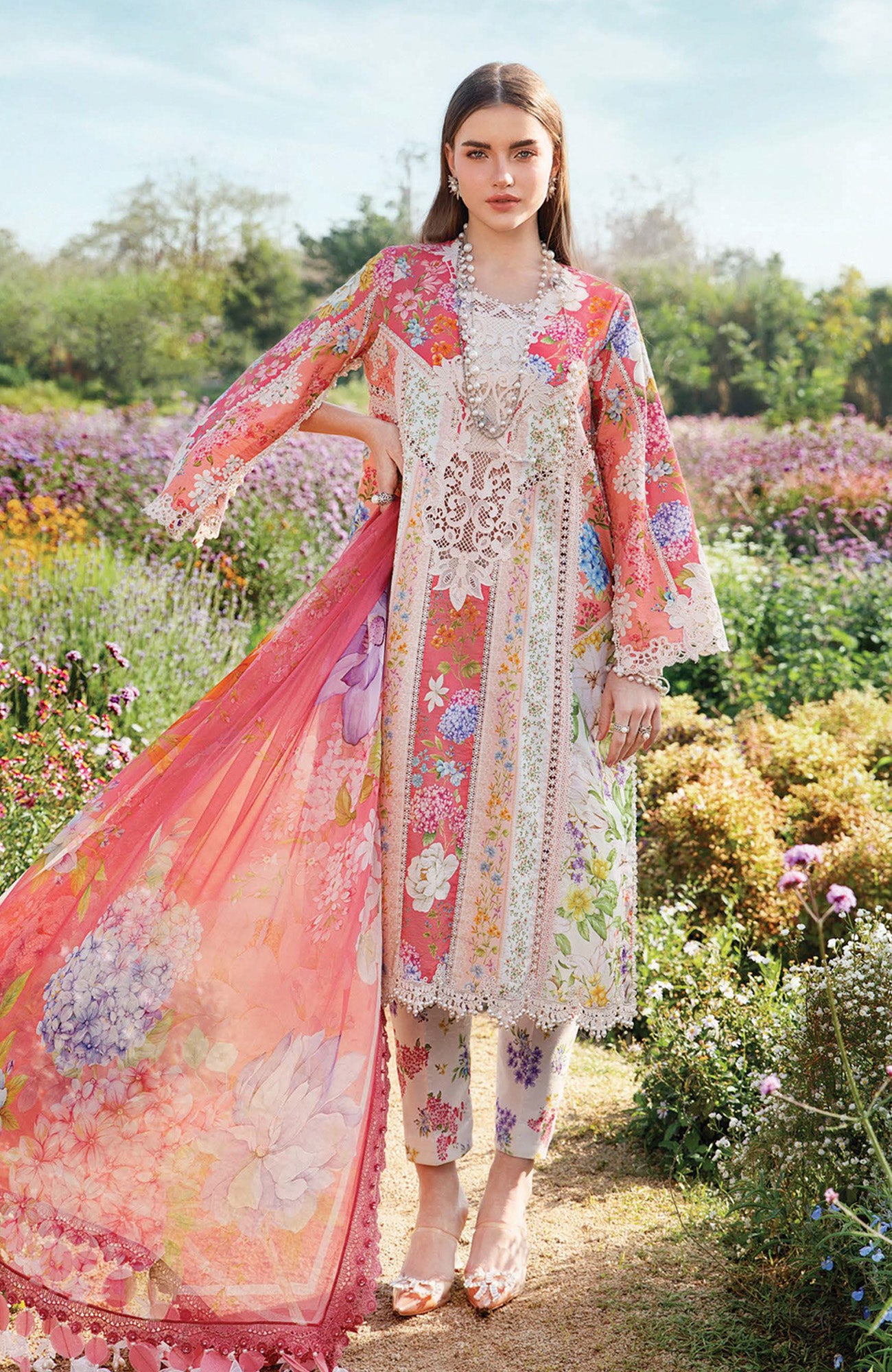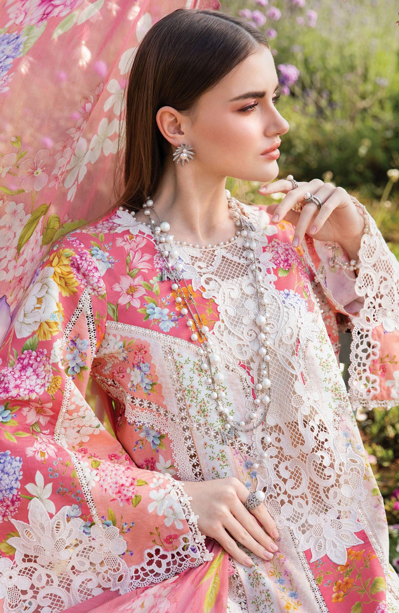 DESCRIPTION:ShirtPrinted ShirtEmbroidered Neck PatchEmbroidered PatchesFabric: LawnColor: PinkTrousersPrinted TrouserFabric: CambricColor: PinkDupattaPrinted DupattaFabric: ChiffonColor: Pink