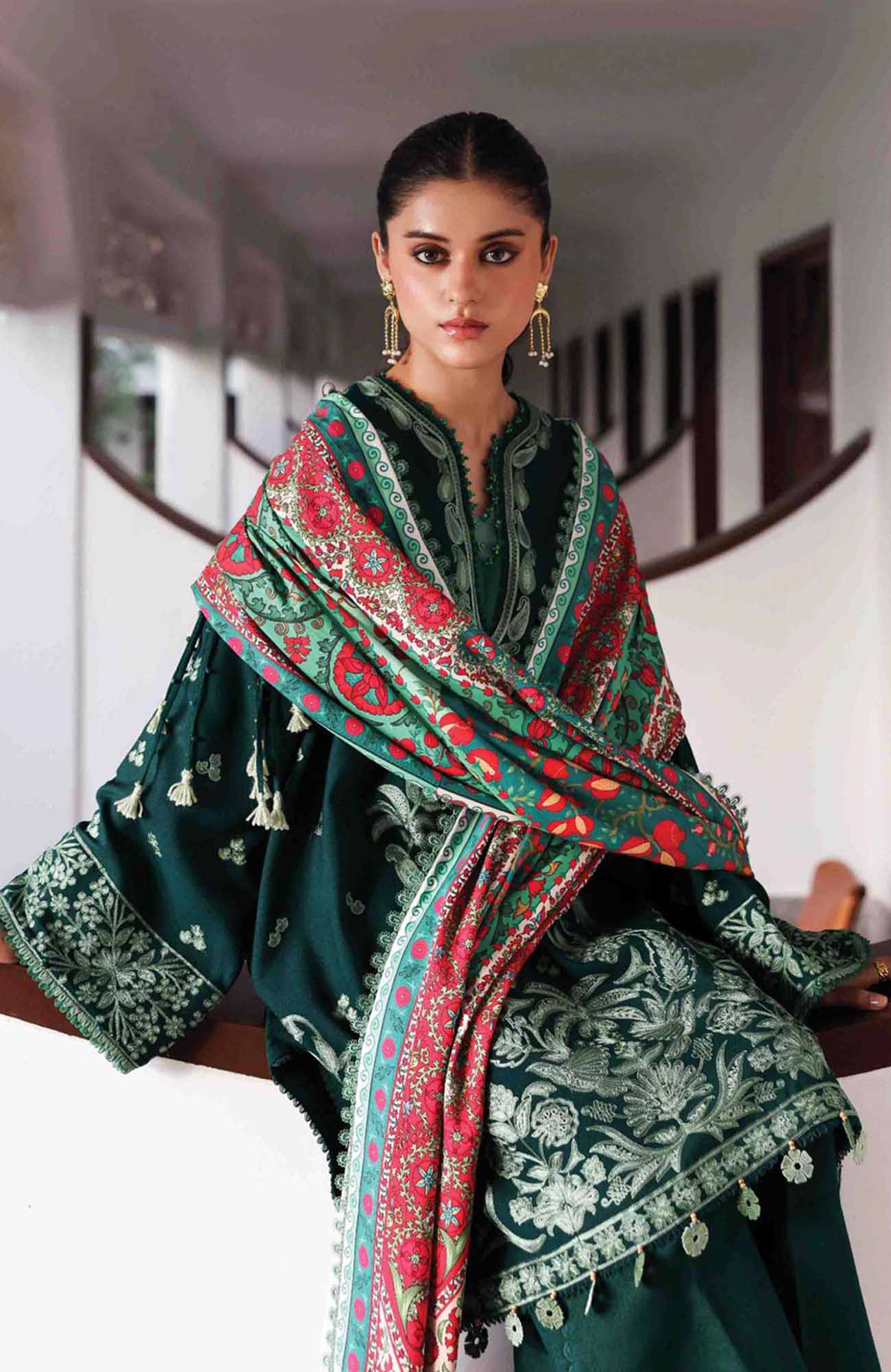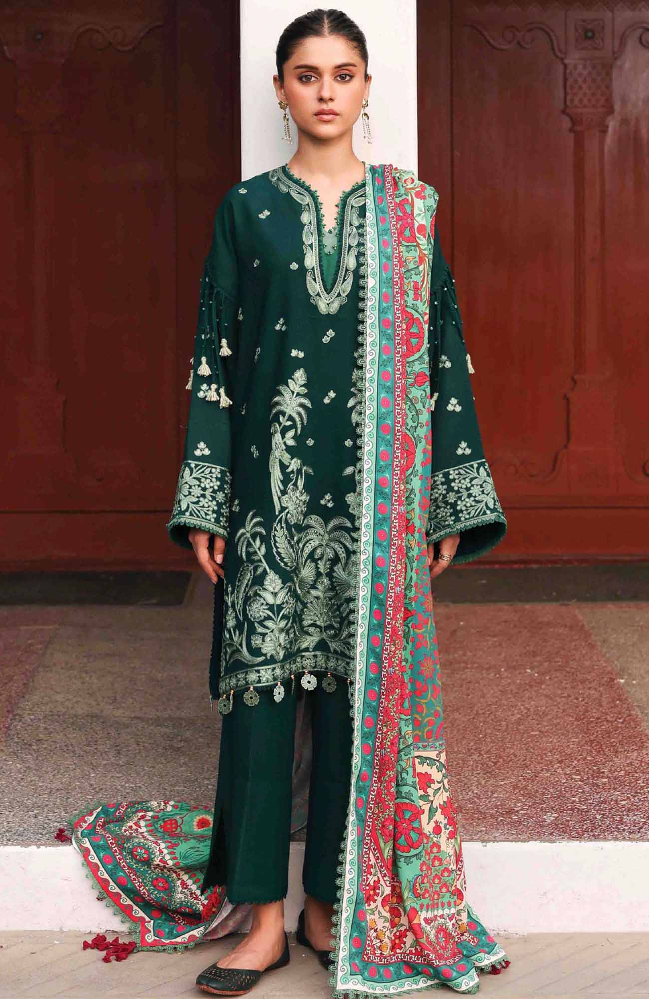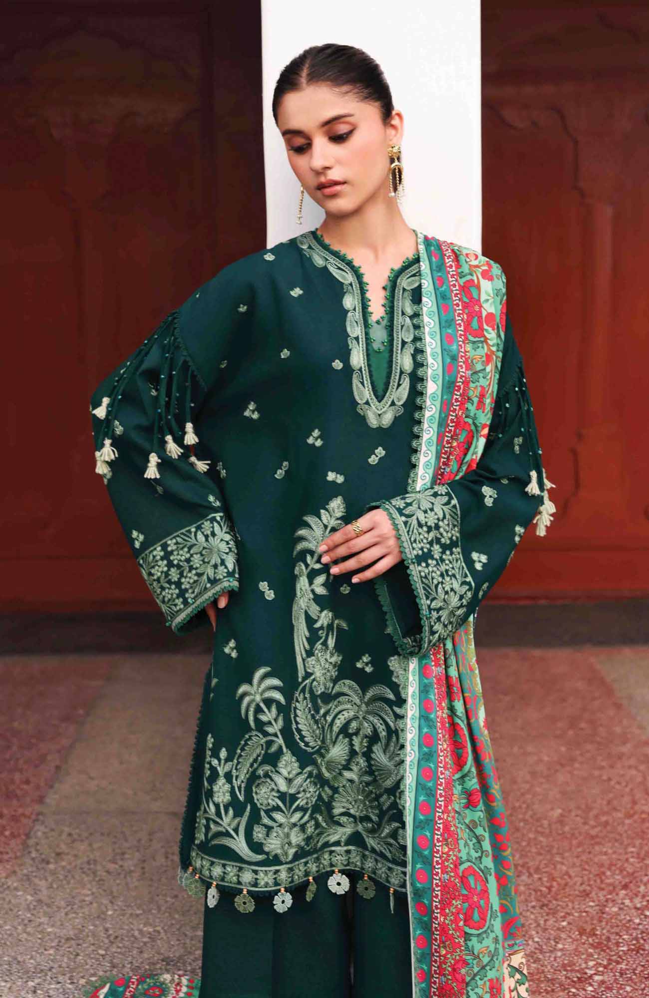 DESCRIPTION:Front Center Embroidered Panel (Karandi) 1-PCFront Left Embroidered Panel (Karandi) 1-PCFront Right Embroidered Panel (Karandi) 1-PCSleeves Embroidered (Karandi) 22"Shawl Printed (Twill Marina) 1-PcBack & Trousers (Karandi) 1-PC