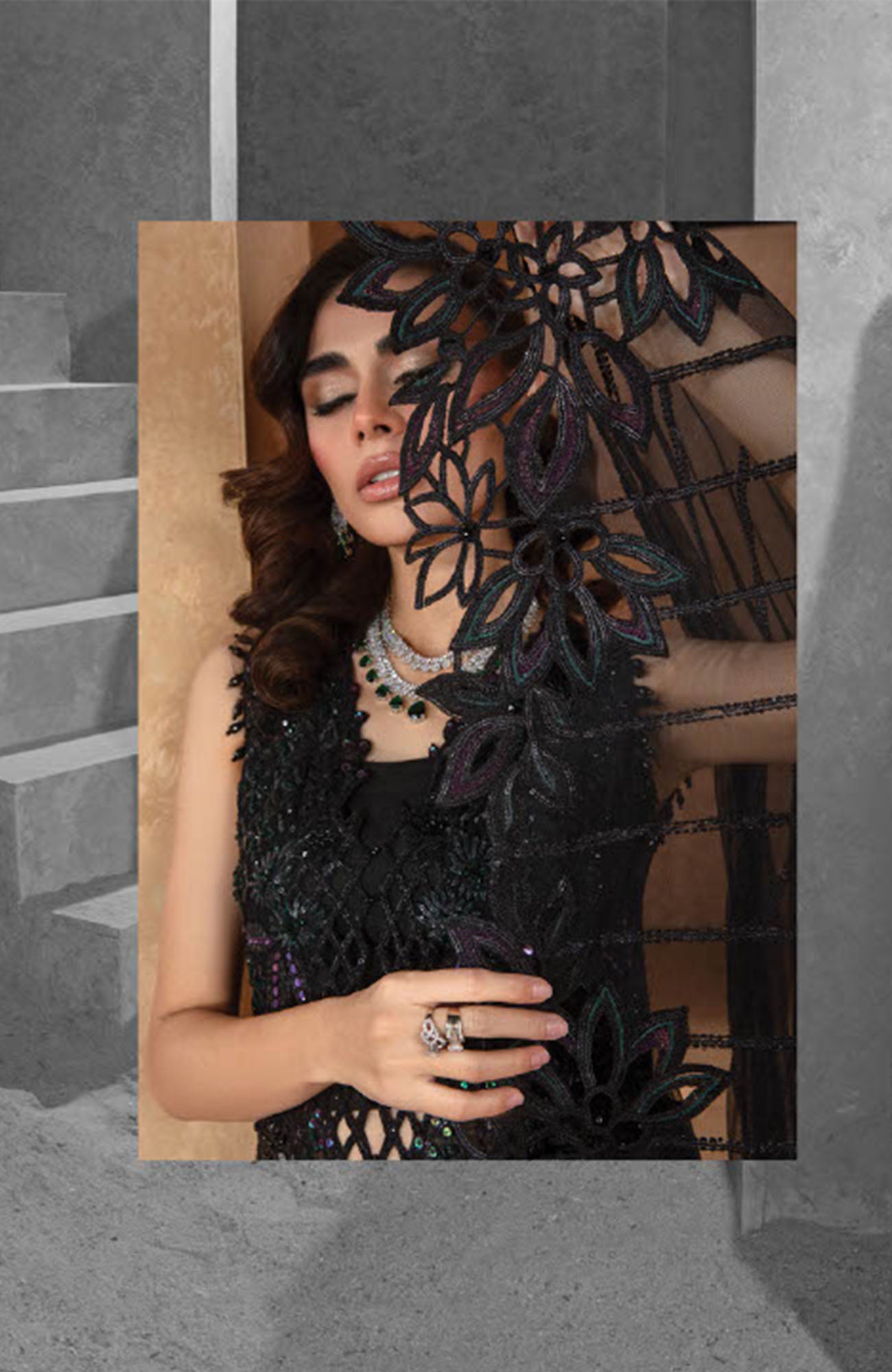 Dyed Embroidered Sleeve Lace 45"