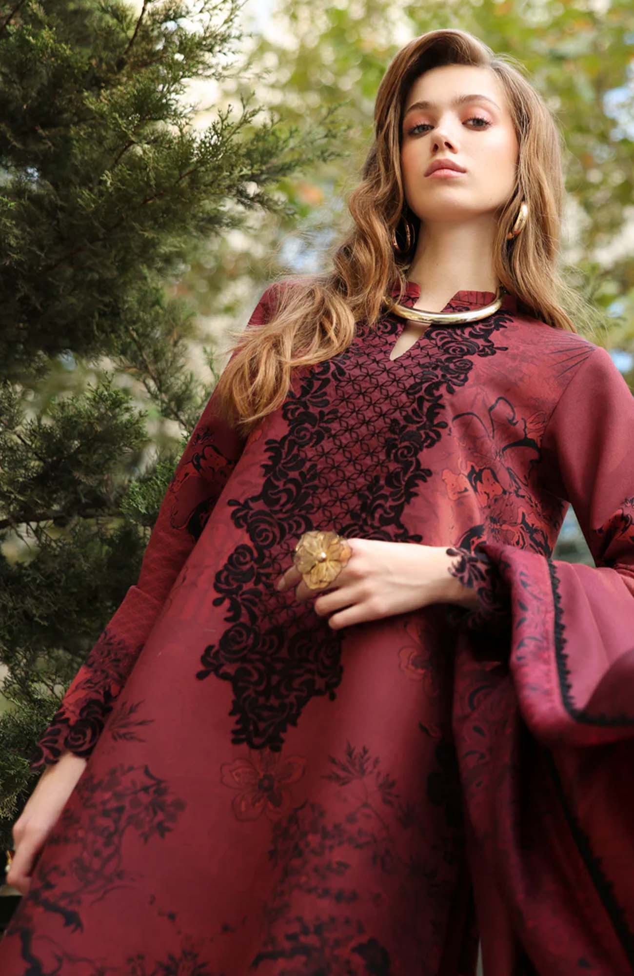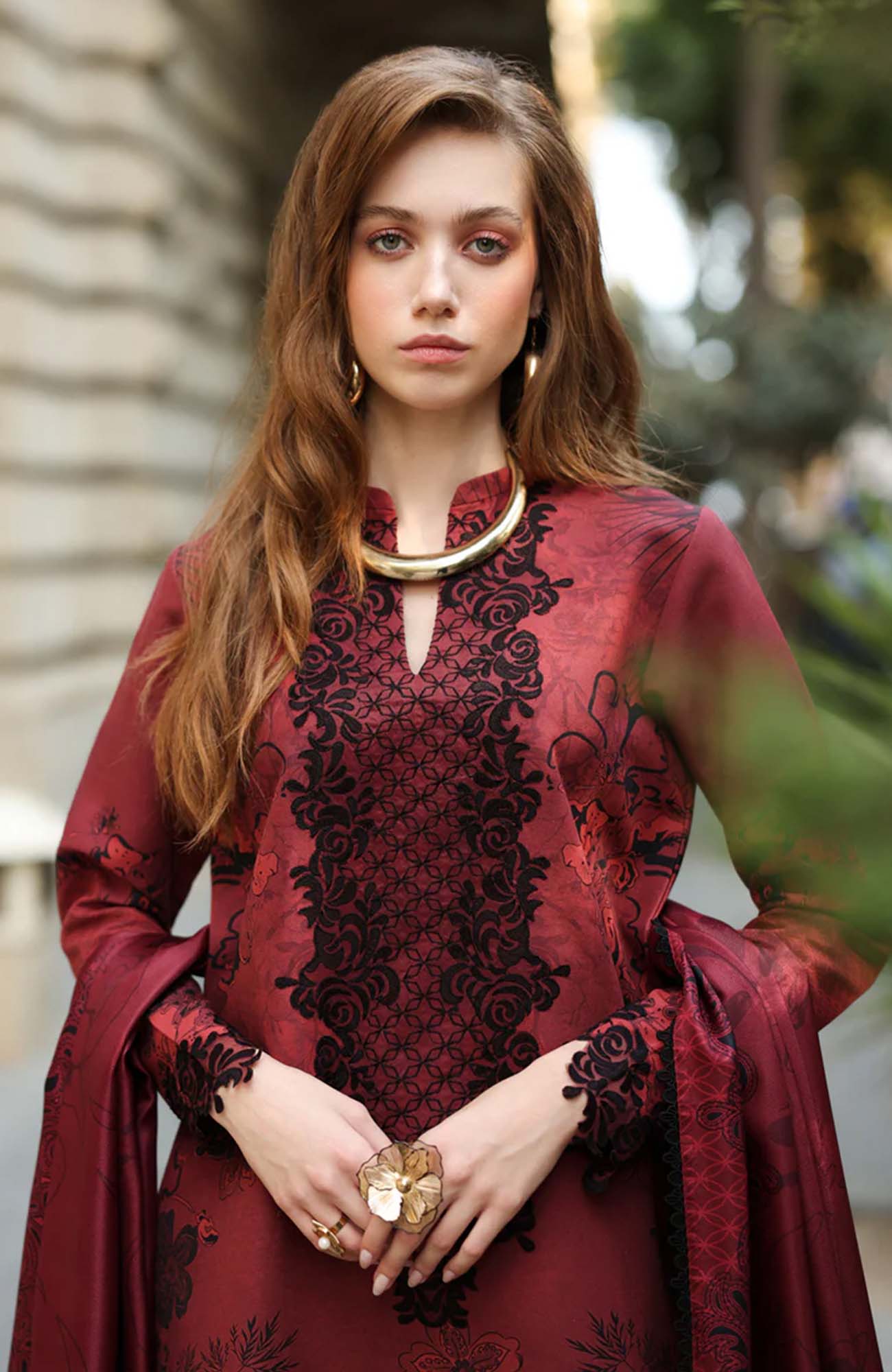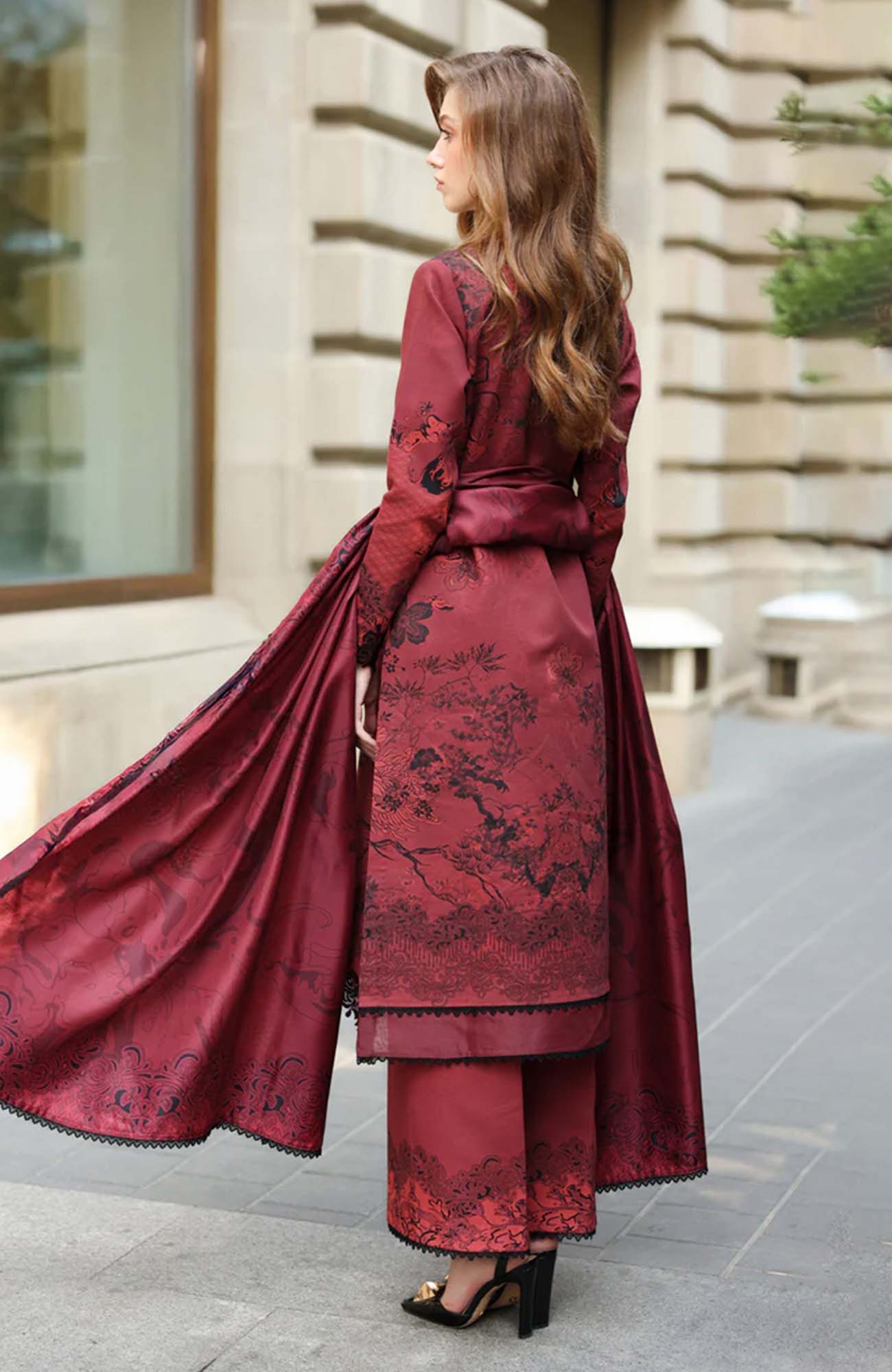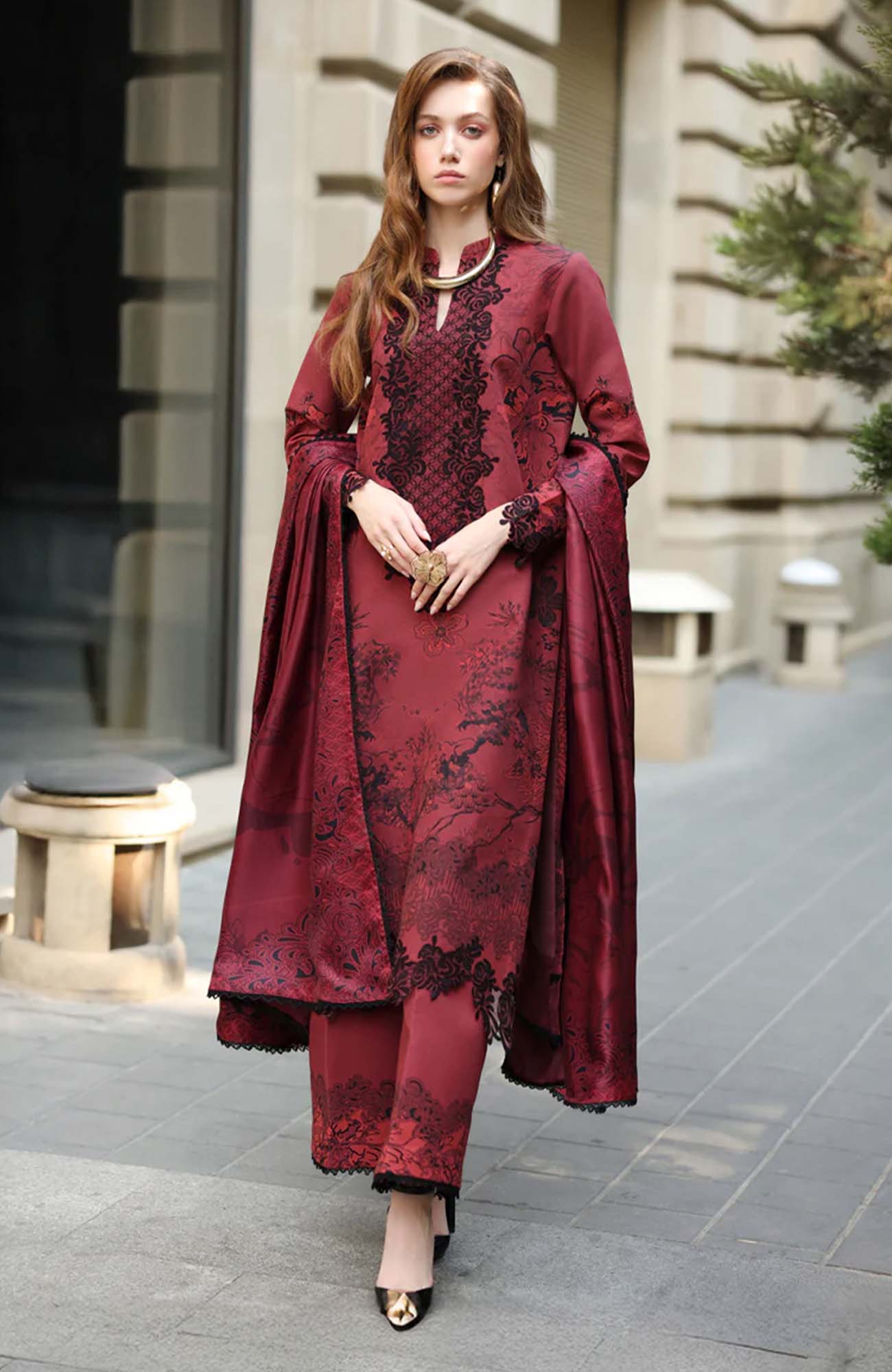 Dyed Organza Embroidered Front Neck Line 1 PcDyed Organza Embroidered Front Border 30 InchesDyed Organza Embroidered Sleeve Border 40 InchesPrinted Khaddar Shirt 3 MeterPrinted Herringbone Shawl 2.5 MeterPrinted Khaddar Trouser 2.5 Meter