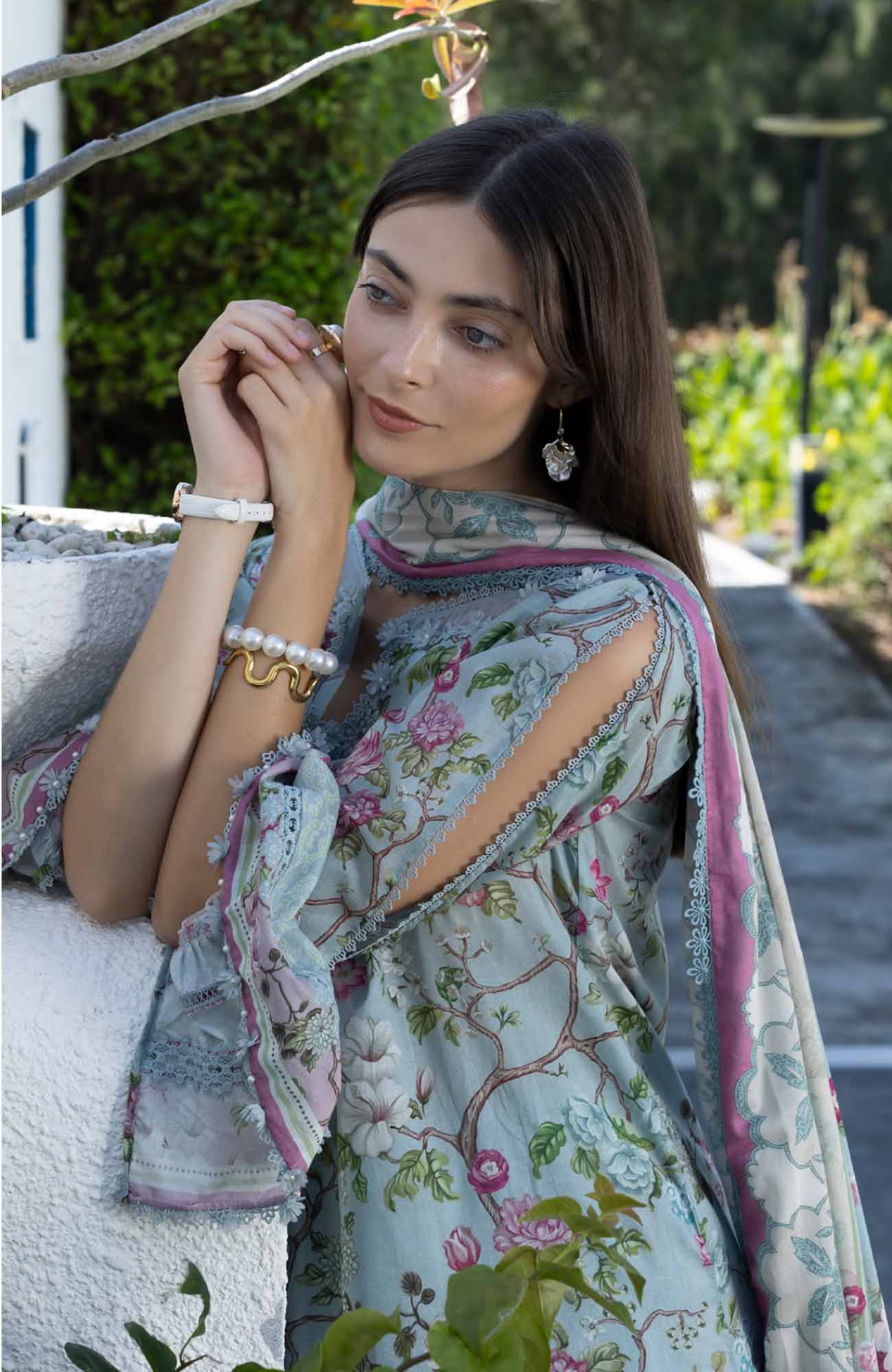 Santorini by Elaf Unstitched Lawn Printed 3 Piece Unstitched Suit - ELFSAN8A- Eirinr Bloom- Summer Collection