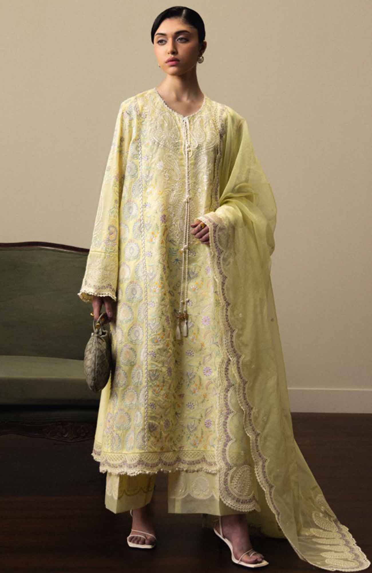 Embroidered Pima Lawn Front Left Side Panel – 13 Inches