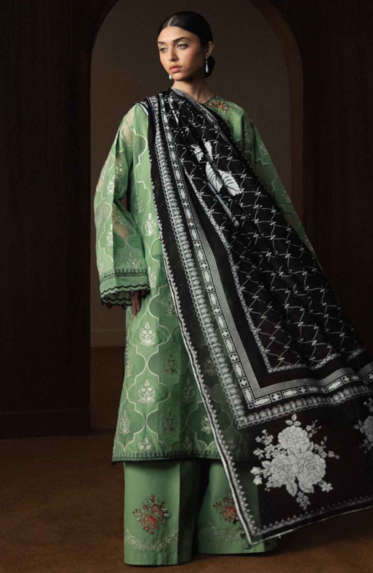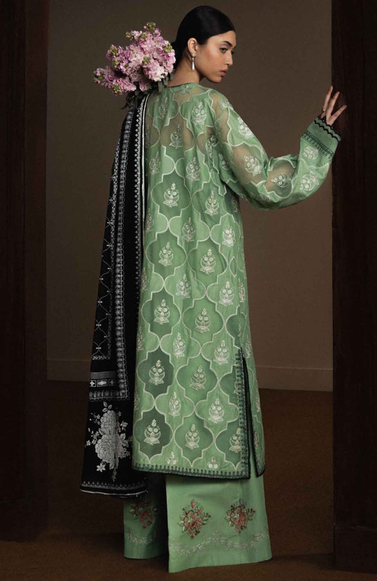 Laser Work Embroidered Pima Lawn Sleeves – 0.66 Mtrs
