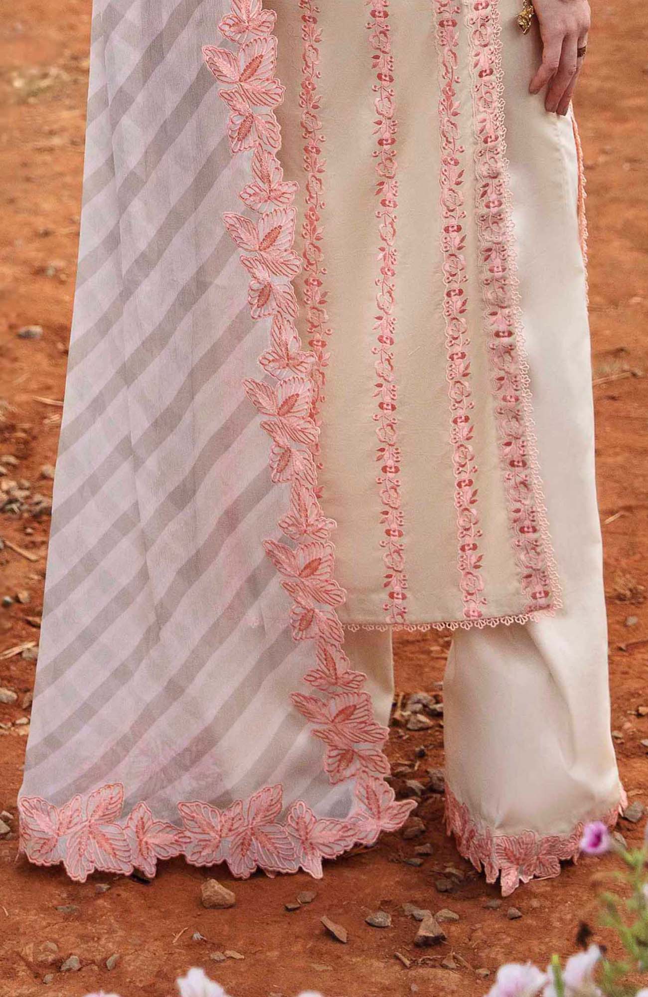 EMBROIDERED FRONT RIGHT PANEL ON LAWN FABRIC W-7" L-50" 01