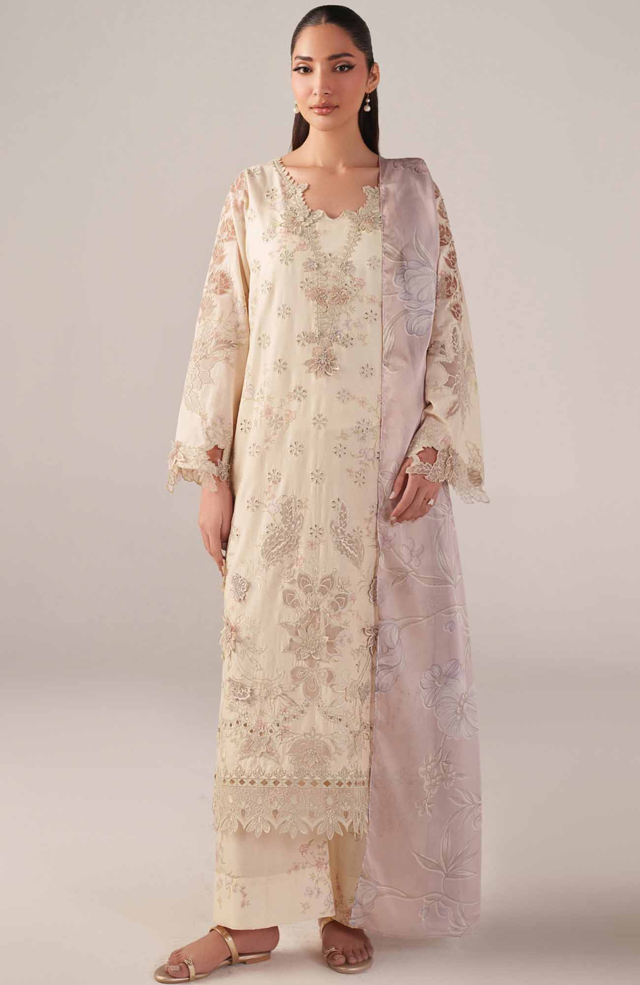 Shirt Front: Borer Embroidered Printed Laser Cut Lawn