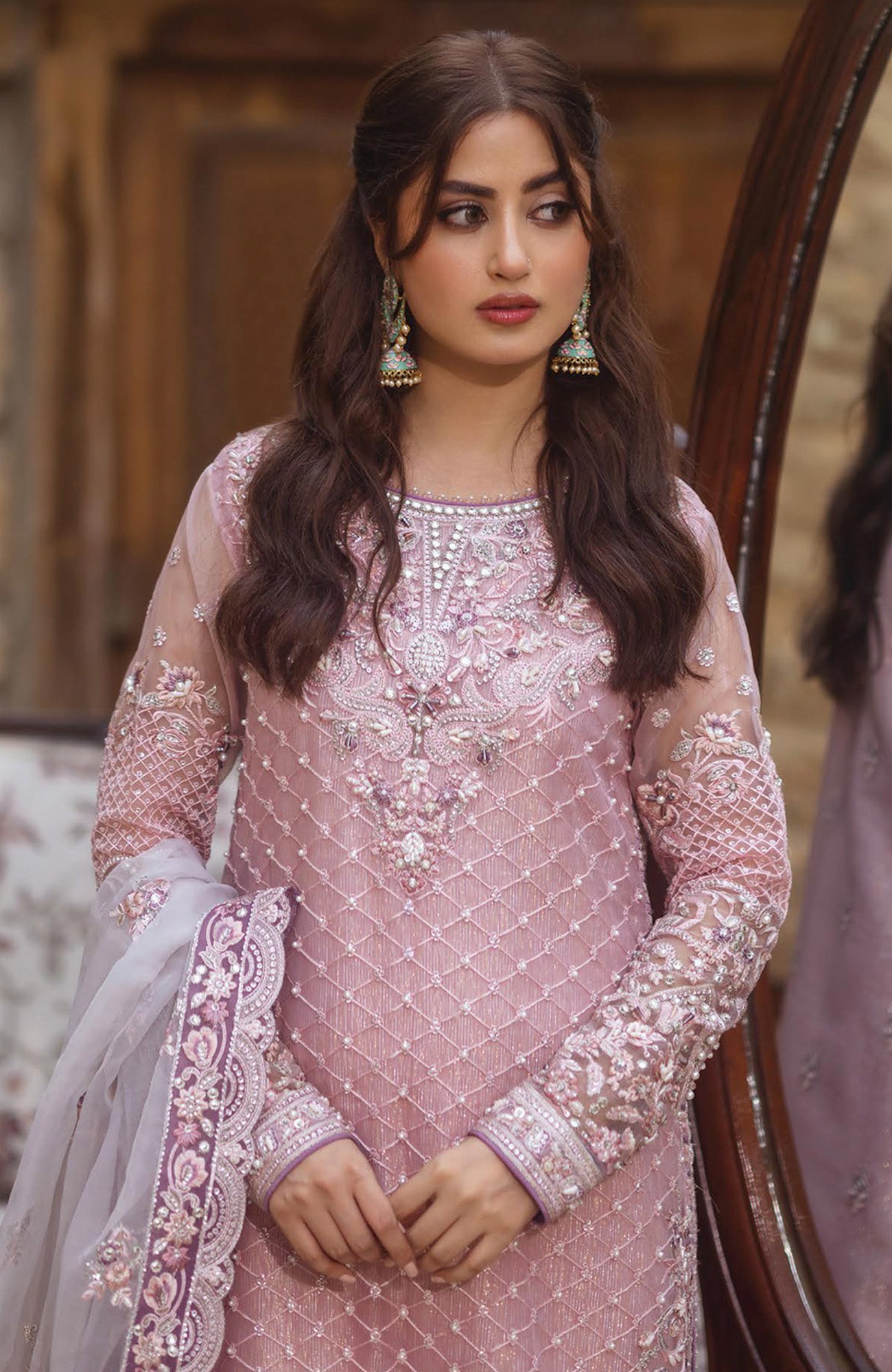 Embroidered organza for dupatta