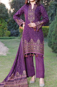 Fabric Details:SHIRT:Printed Lawn (3 Mtr)DUPATTA:Printed Lawn (2.5 Mtr)TROUSER:Plain Dyed Lawn (2.5 Mtr)