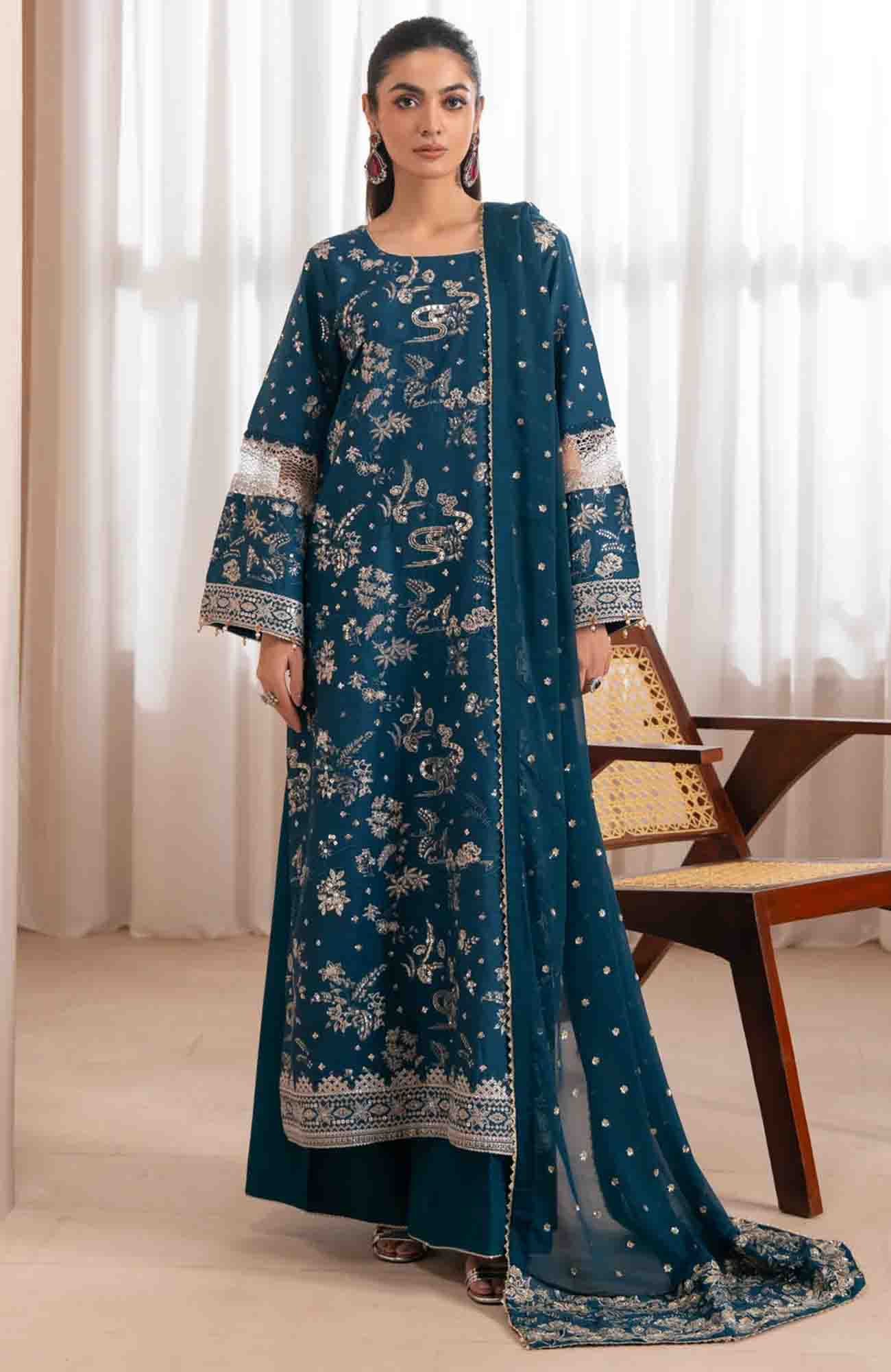 Zaeva By Xenia Unstitched Raw Silk Embroidered 3 Piece Suit- XNZVAF-02- SAZIL- Formal Collection