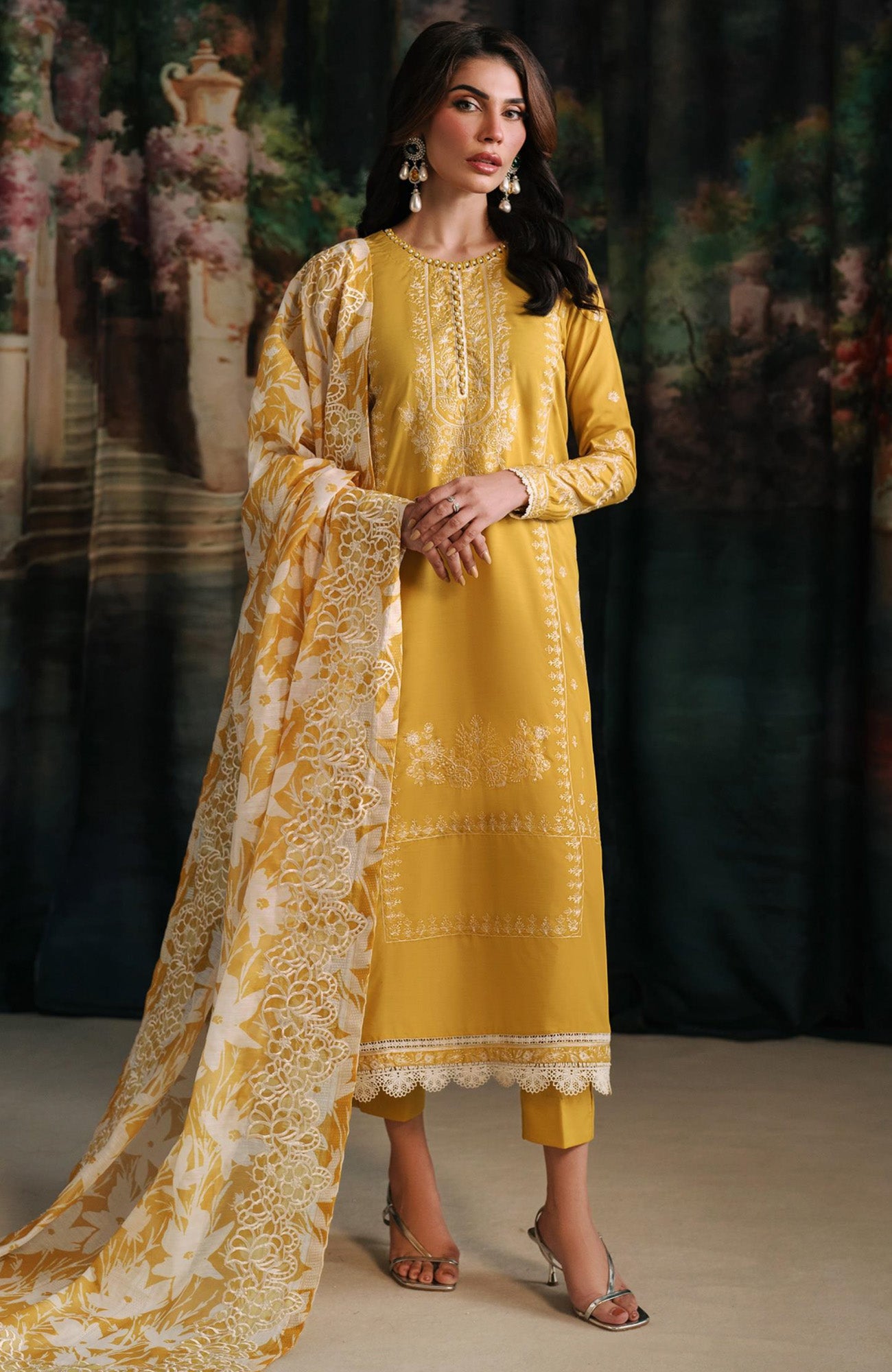 DESCRIPTION:Shirt Front:Embroidered Raw SilkShirt Back:Embroidered Raw SilkSleeves:Embroidered Raw SilkShirt Laces:-Daman Lace-Side Slit Lace For Front & Back-Sleeves LaceDupatta:Printed Nano MonarDupatta Lace:Embroidered Organza lace4 SidesTrouser:Raw Silk